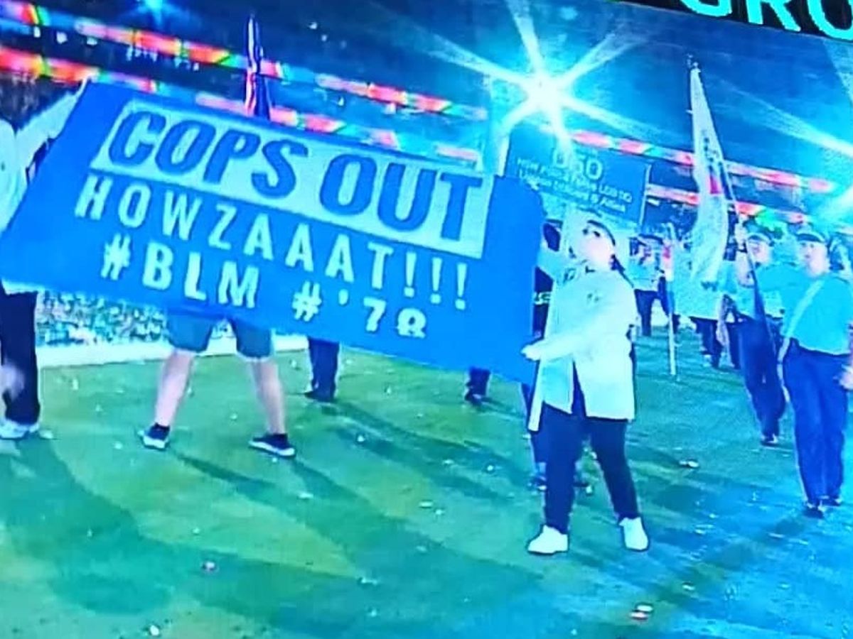At this years Sydney Mardi Gras parade the Department of Homo Affairs (DOHA) intercepted the NSW and Federal Police floats. Dressed as cricket umpires we jumped onto the SCG field and called the cops OUT! Our action was in solidarity with over-policed communities, in particular First Nations communities. We hoped to draw on the spirit of the 78ers by taking this action.