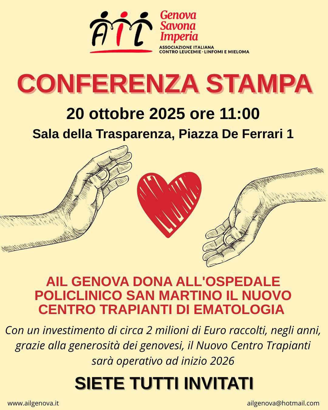 Ogni donazione, anche la più piccola, ci avvicina all’obiettivo: consegnare il nuovo Centro Trapianti entro il 2026 e offrire una speranza concreta a chi lotta ogni giorno.