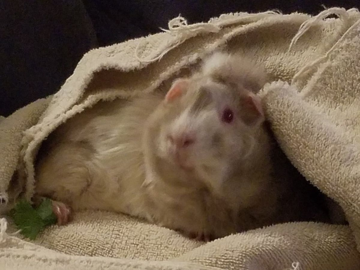 Anyone who knows us knows that our animals are family. During the holiday season we suddenly find our family in need. Unexpected illness and expenses have put one of our guinea pigs, Nutmeg, in dire straits. She is currently fighting for her life against a very large, unidentified growth on her uterus. The mass is pushing all of her organs aside causing a high white blood cell count, lethargy, digestive problems, and hair/weight loss. The vet tells us that at best it is a uterus infection, at worst its a cancerous tumor. Either way, spaying Nutmeg is the only viable, long-term solution, but it is a pricey procedure made all the more complicated by her fragile state.
