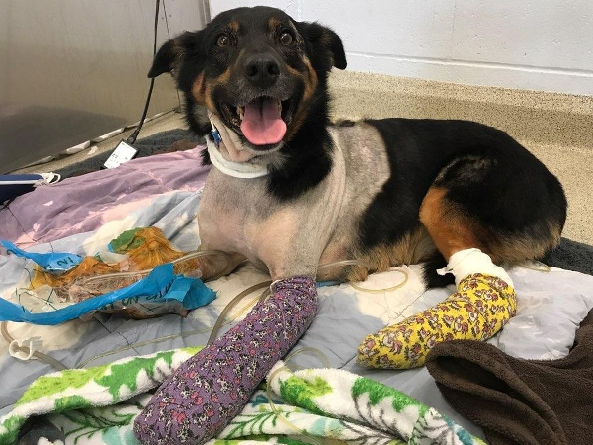 Although the Dr.’s are holding out hope that they can save her legs, nothing is certain except that it will be a very long road to recovery. There are skin grafts, surgeries, physical therapy and numerous other procedures to contend with. The cost at Ryan Hospital is approximately $1,000.00 per day and right now doctors estimate a 2-3 week stay. Following that emergency treatment she will then be transferred to the family vet.