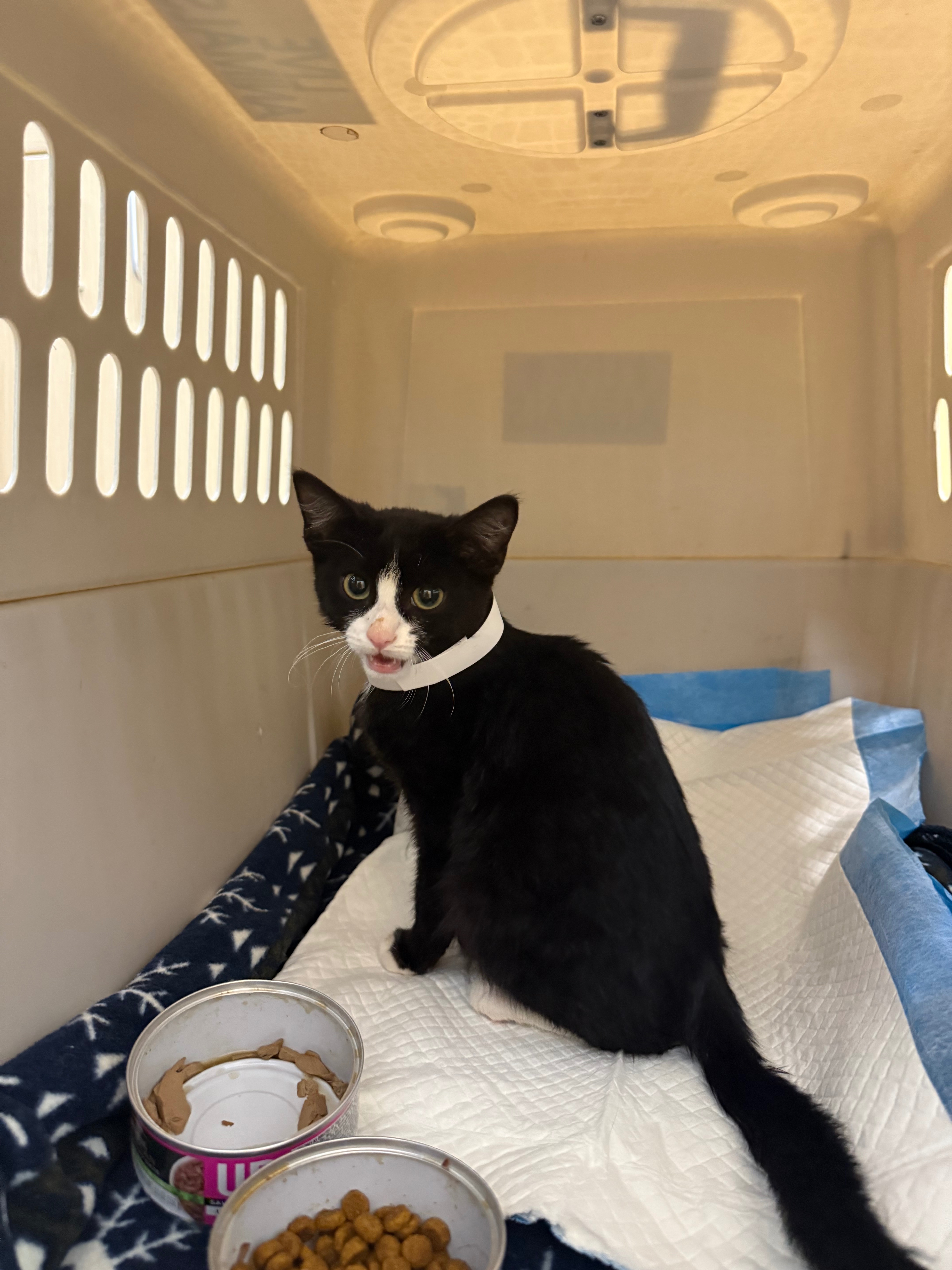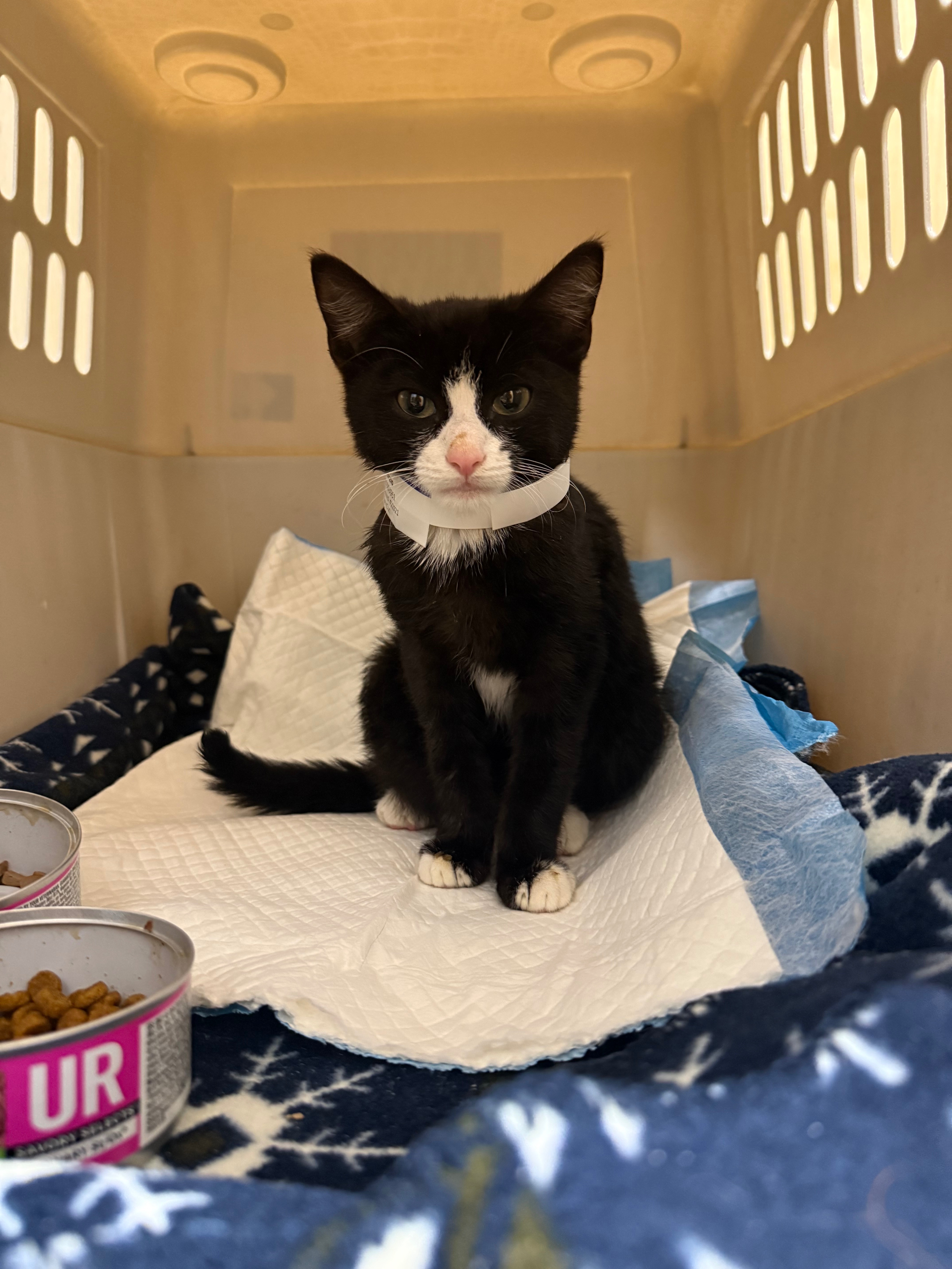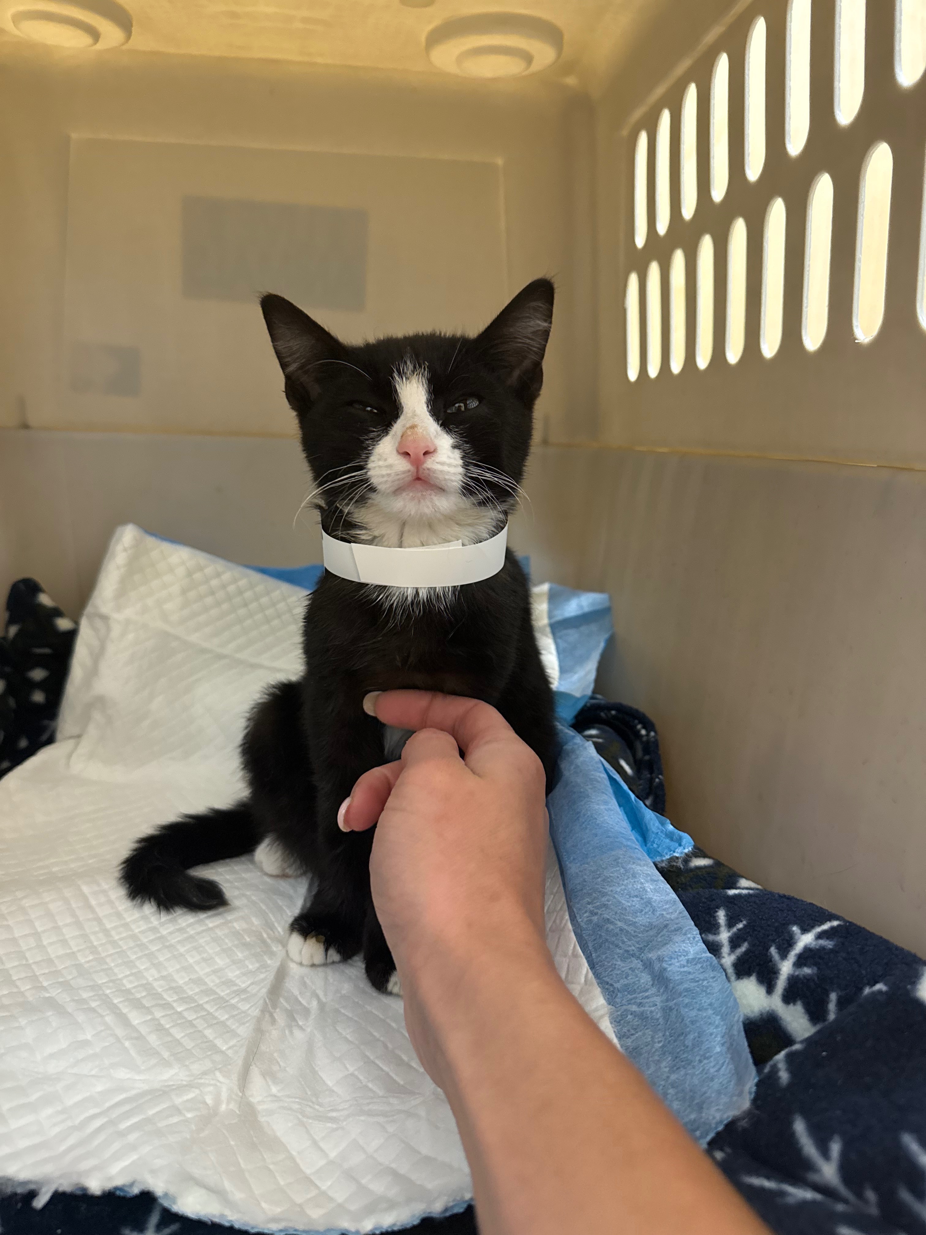 Everyone meet Obi. He has had quite the journey so far for only being a 4 month old little guy. I found him sitting in the middle of the road with a severe abscess on the side of his neck. When I scooped him up, he looked so deeply at me (seemingly into my soul), I knew he was desperate for help. He was incredibly malnourished, and all he did that night was eat and eat and eat. I took him to the ER the next morning, and they found he had a pneumothorax, bruising on his lungs, and a significant inguinal hernia involving a large portion of his large intestine. He was also anemic and required a blood transfusion. Despite all of these complications, he continued to be his resilient little self and eat and drink and occasionally purr. He’s set to have surgery to repair his hernia and continue his recovery journey, and hopefully return home to his new very loving home where his brothers and sisters are eagerly awaiting his arrival!