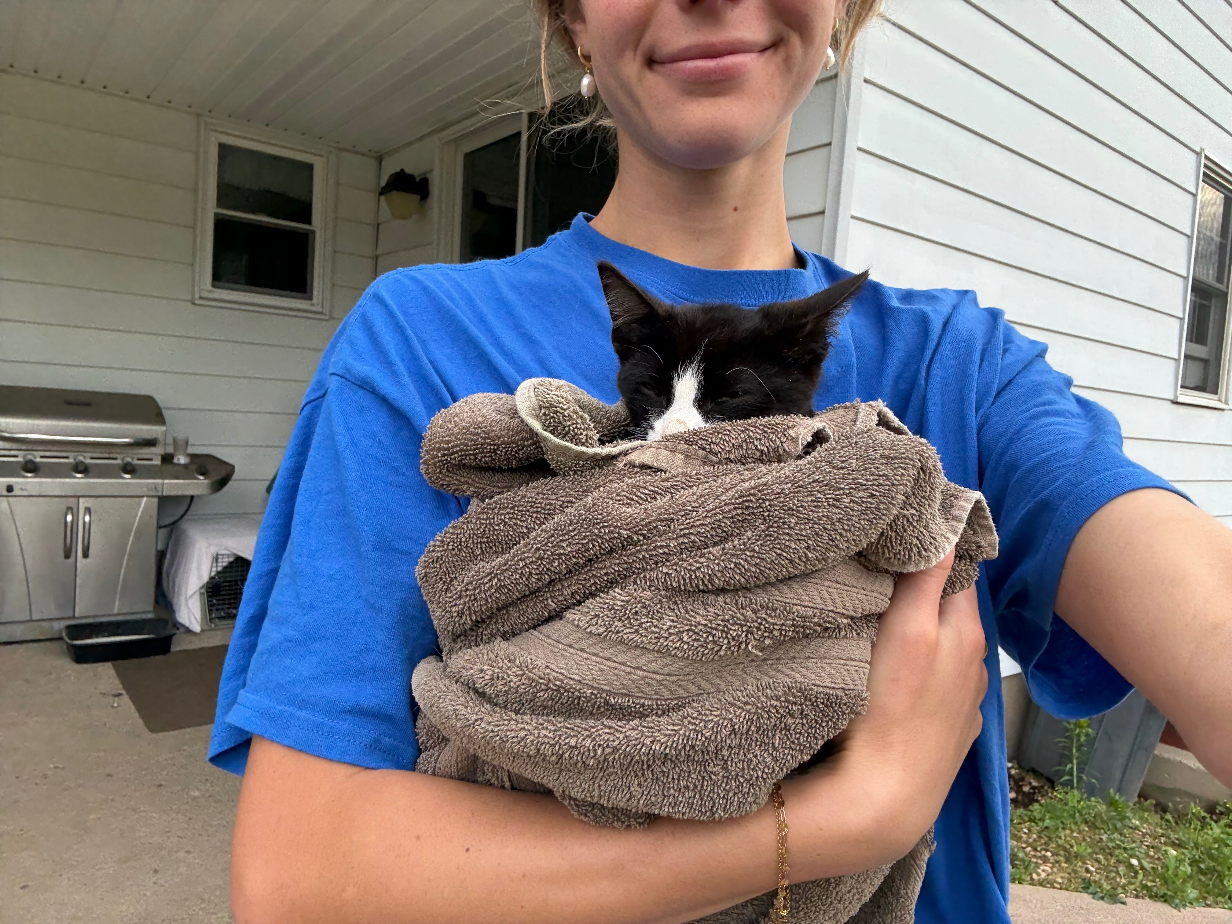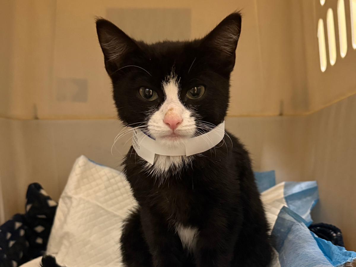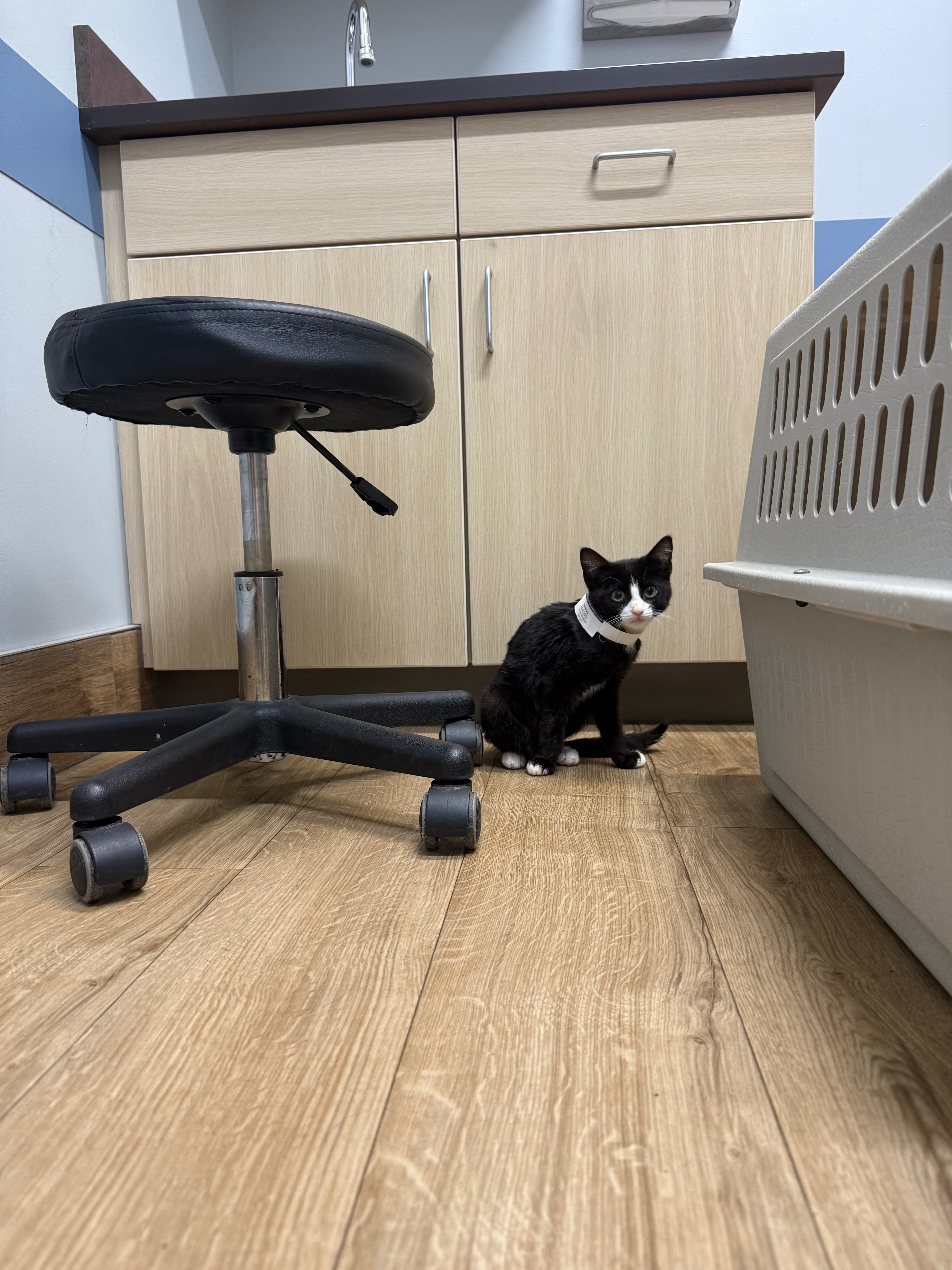 Everyone meet Obi. He has had quite the journey so far for only being a 4 month old little guy. I found him sitting in the middle of the road with a severe abscess on the side of his neck. When I scooped him up, he looked so deeply at me (seemingly into my soul), I knew he was desperate for help. He was incredibly malnourished, and all he did that night was eat and eat and eat. I took him to the ER the next morning, and they found he had a pneumothorax, bruising on his lungs, and a significant inguinal hernia involving a large portion of his large intestine. He was also anemic and required a blood transfusion. Despite all of these complications, he continued to be his resilient little self and eat and drink and occasionally purr. He’s set to have surgery to repair his hernia and continue his recovery journey, and hopefully return home to his new very loving home where his brothers and sisters are eagerly awaiting his arrival!
