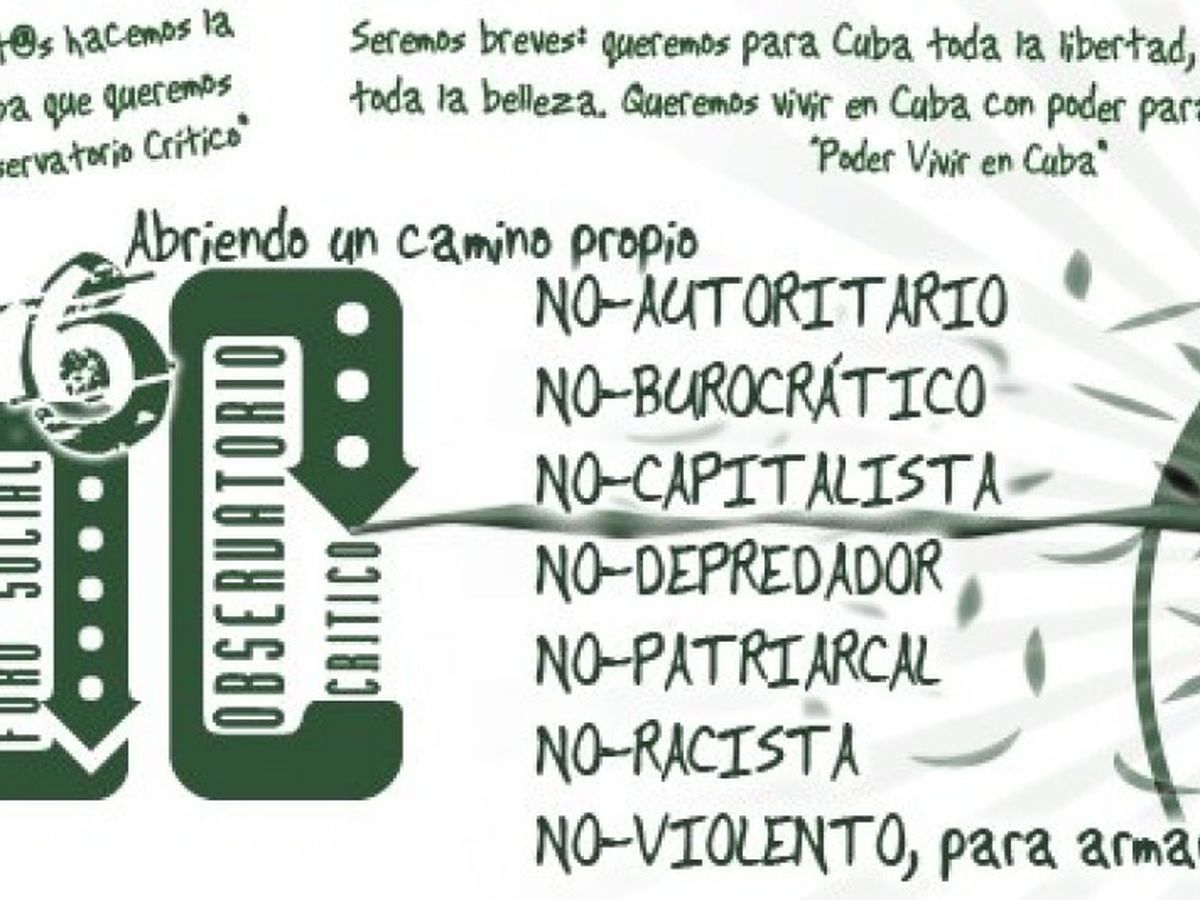 We are the Observatorio Crítico Cubano. Our projects include years of work for non-violence, the struggle against racism, LGBT rights, the recovery of our Indigenous and Black original heritage, Ecology, the development of Open Source computer culture, communities for mutual aid in mental health, support for childhood education by means of non-competitive and non-adult-centered child play, cultural research, promoting self-managed socialism, and the crafting of proposals for building Cuba's future from an anarchist perspective.
