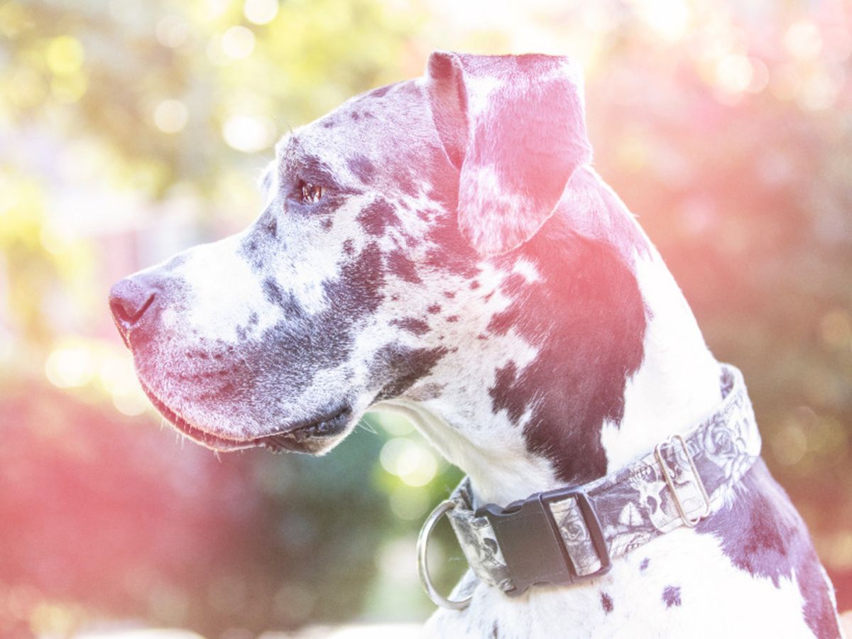 Hi! It’s Mandie, I’m here to tell you about our oldest dog and his battle against cancer. Odin is a six-year-old Harlequin Great Dane in Kennesaw, GA. Some of his favorite things are head boops, snuggles on the sofa and zoomies with his Dane sister Freya. He also loves hanging out on the patio at Keegans Irish Pub, especially when football is on. Odin also loves rides in the Jeep, his grandma (Joyce) and the P-A-R-K, which we have to spell out in case he accidentally hears us say it.
