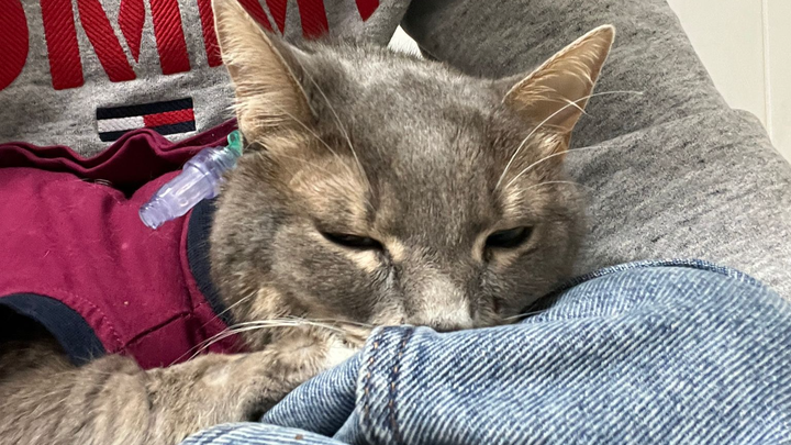 Einer ihrer ersten Katzen (6 Jahre alt), Olivera (Oli) ist vor ca 4 Wochen erkrankt worden. Sie zeigte dies indem sie nichts mehr essen wollte. Dani hat nicht lange gewartet und besuchte sofort den besten Tierarzt, den wir im Ort haben. Dieser konnte keine Auffälligkeiten feststellen und sie fuhr mit Oli in der nächste Tierklinik in der Nähe wo Oli ihren Kampf um Leben angefangen hat. Direkt am nächsten Tag wurde Oli das erste mal operiert. Die Ärzte meinten, dass sie seit 30 Jahren in deren Beruf so was nicht gesehen haben. Im Olis Bauch hat sich eine, komisch riechende, Flüssigkeit gesammelt, die sie sofort entfernt haben. Allerdings konnten die nicht feststellen woher diese Flüssigkeit stamm. Am nächsten Tag ging Oli deutlich besser, sie hat sogar bisschen Nahrung zu sich genommen, aber ihre rote Blutkörperchen waren etwas niedrig sowie Körpertemperatur, weshalb sie unter der Wärmelampe die ganze Zeit liegen musste. Am nächsten Tag hat sich der Zustand verschlechtert und Oli musste Bluttransfusion bekommen damit die rote Blutkörperchen wieder steigen, da ihr Körper nicht genug produzierte. Das half ihr für einen Tag und dann musste erneuerte Bluttransufion durchgeführt werden. Oli bekam dann täglich eine Bluttransfusion, wir gingen jeden Tag mit eine andere Katze aus unseren Freundeskreis um Blut zu spenden, den aufgeben war keine Lösung, da Olis Organe in Ordnung waren. Nach ca 7 Tagen fanden die Ärzte Flüssigkeit in Olis Lunge und Herz, weshalb sie erneut operiert werden musste. Oli (kleine Kämpferin) hat auch diese OP überstanden, aber ihr Zustand war nicht besser. Sie hörte wieder auf zu essen.