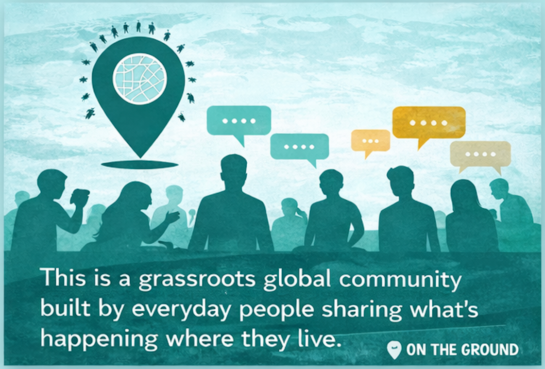 On The Ground is designed to be a simple, grassroots online community where everyday people can share what is happening in their own: