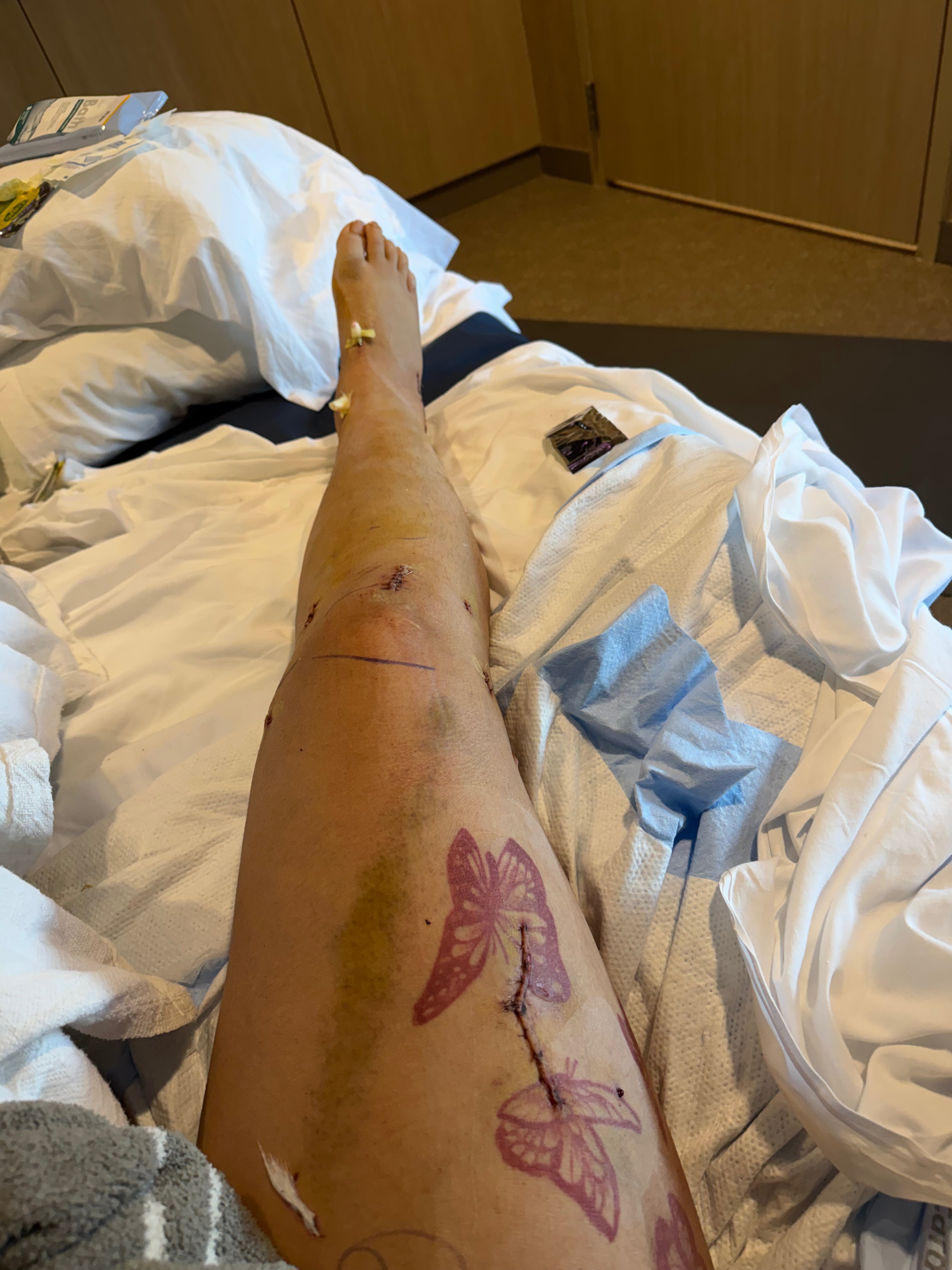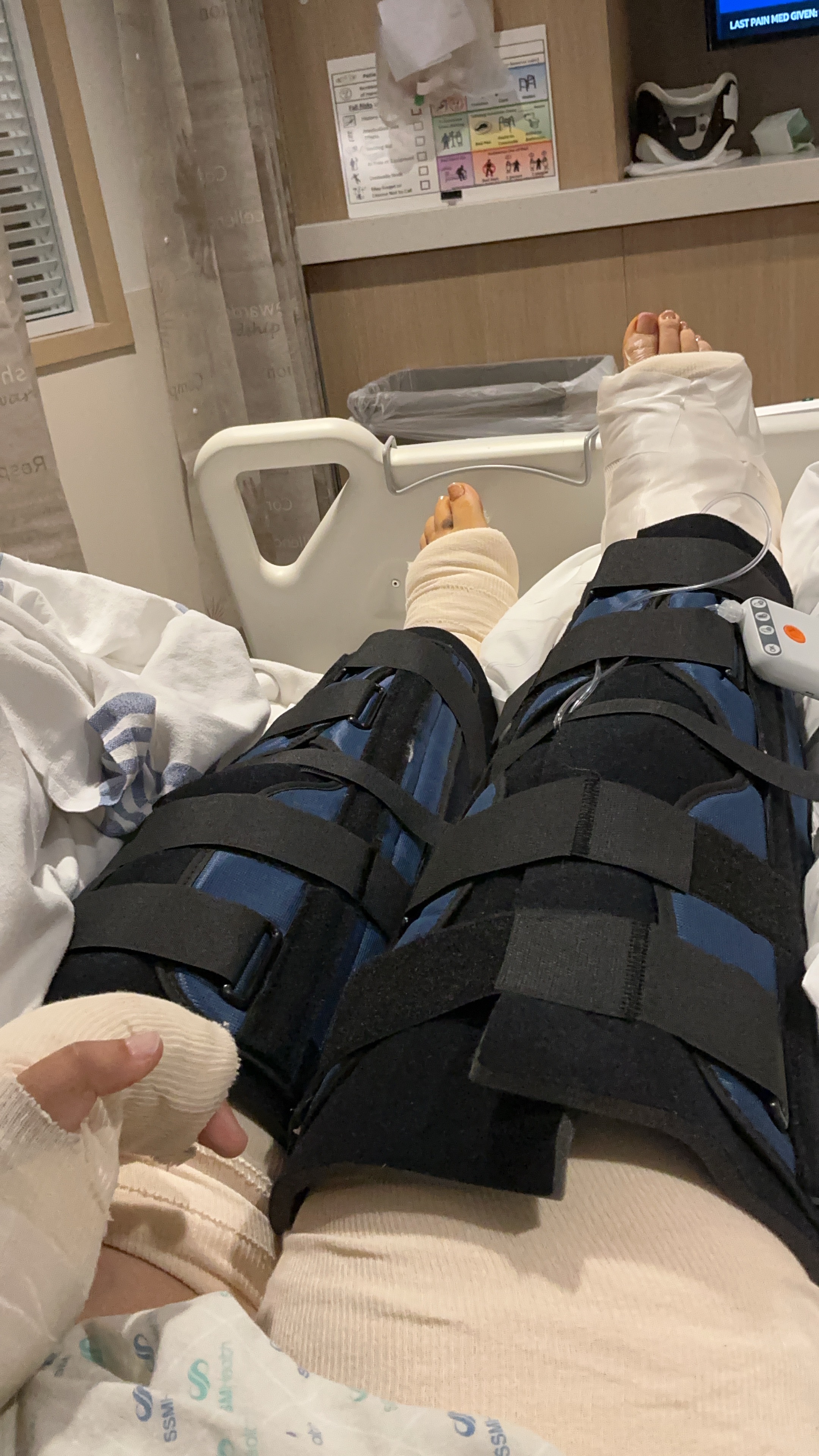 On Christmas night, I was involved in a severe car accident that left my vehicle engulfed in flames. I suffered multiple serious injuries, including a broken right femur, broken kneecaps, a broken ankle, a broken left wrist, multiple broken ribs, and a fractured pelvis. I also sustained a concussion and a burn to my eye.