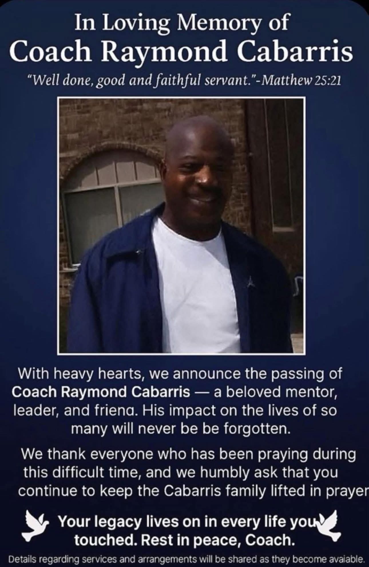 Community Support Request – In Memory of Coach Raymond Cabarris