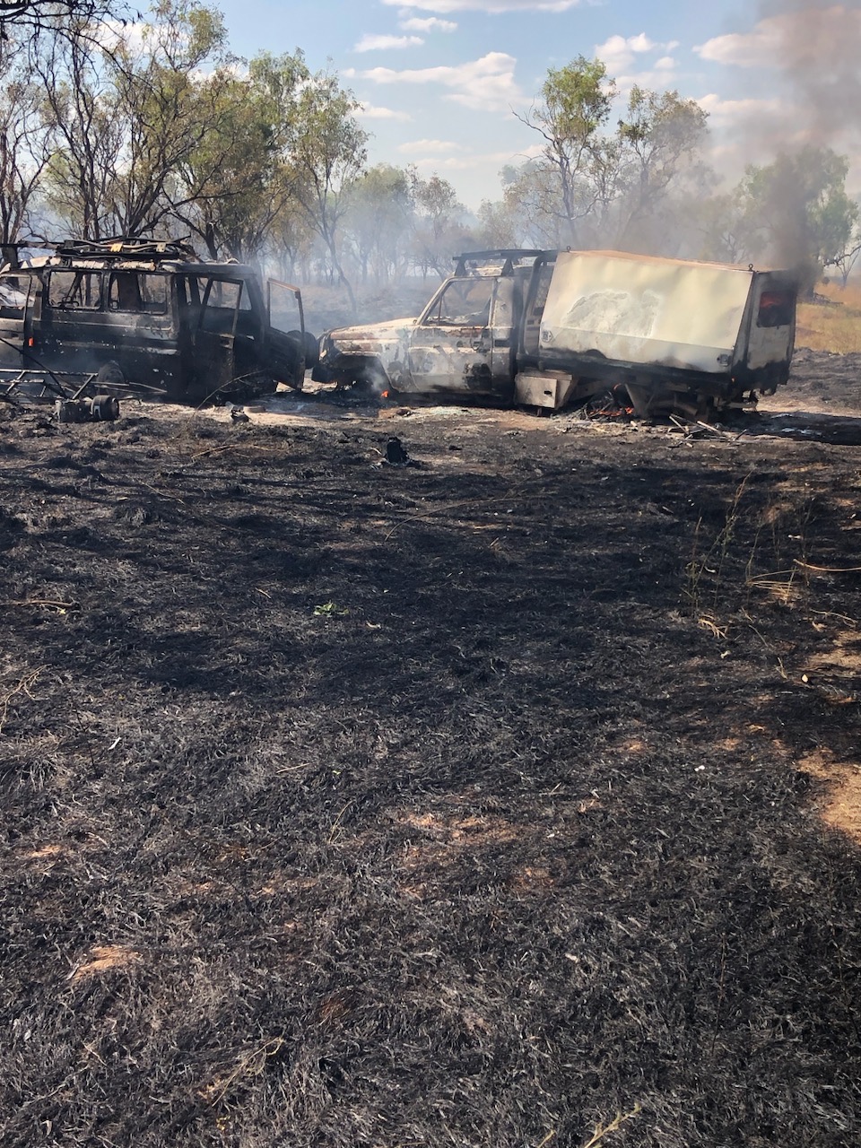 They returned from a day out to find both of their vehicles completely burnt to the ground. Gone were their wallets, cash, clothing, camping gear, and countless irreplaceable sentimental items.