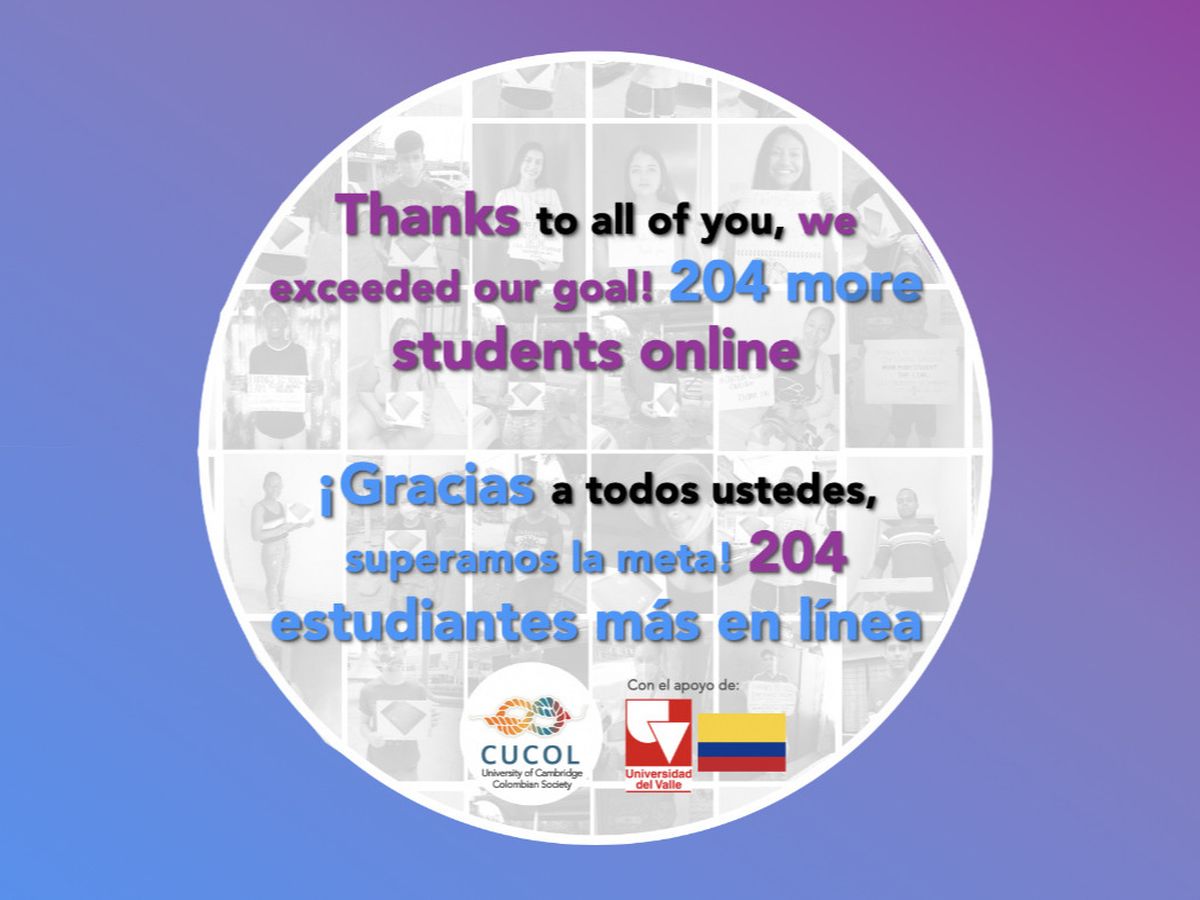 The future of students who have made a great effort to go to the university is at stake and it is urgent to act. +2000 students from Universidad del Valle, a public university in Colombia, are facing challenges to complete their semester due to the COVID-19 outbreak. The University of Cambridge Colombian Society in the UK launches the international campaign #OneMoreStudentOnline in order to give them Internet access, so they can continue their studies online from home. You can help by donating or sharing this information.
