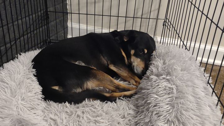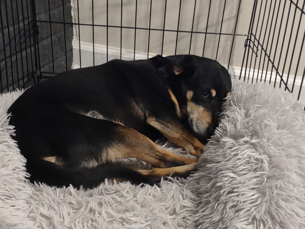 Unfortunately, in early April 2023, Rocco tore his ACL and we also found out he has a luxated patella. We've been keeping him crated. But his condition is worsening and he is having trouble walking and can no longer go up or down stairs.