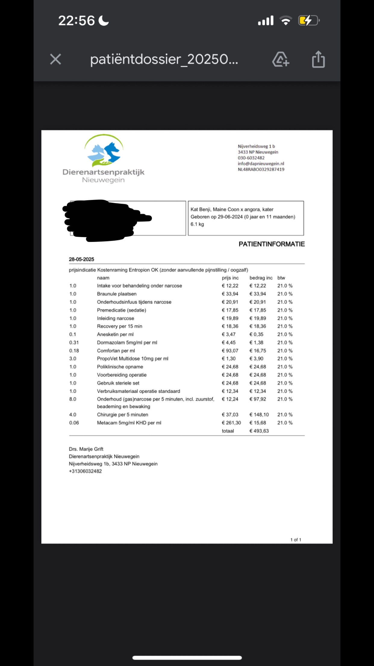 Hallo lieve mensen, ik ben Liena en ik ben 19 jaar en ik probeer geld in te zamelen voor de operatie van mijn lieve kitten benji. Benji is 11 maanden en kreeg plots een oogontsteking. De dierenarts zegt dat hij een entropion heeft ( zijn onderste ooglid krult naar binnen ), waardoor zijn hoornvlies nu ook beschadigd is. Hij heeft heel veel pijn en moet zo snel mogelijk geopereerd worden aan zijn oogje om blindheid of het oog verliezen te voorkomen, alleen heb ik het geld ervoor niet. Alle kleine beetjes zouden benji echt al heel erg kunnen helpen. Laatste slide is bewijs van de kosten. (het is €537 omdat er ook medicijnen kosten bij komen)