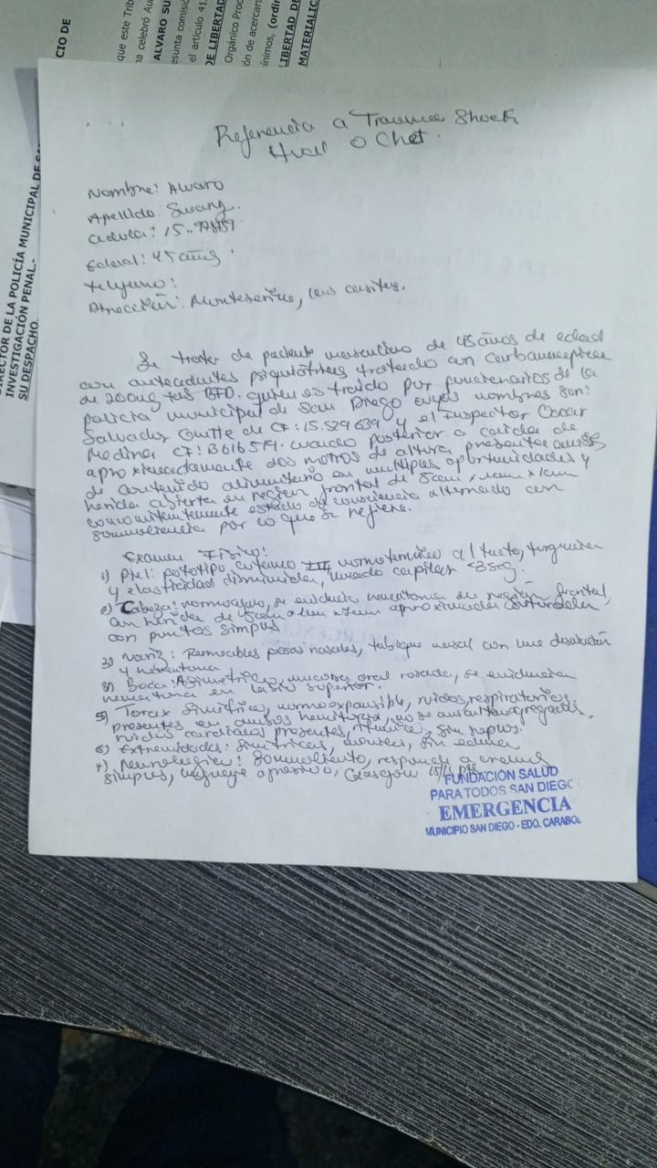 Álvaro atentó contra su propia vida y, durante el episodio crítico en el que se encuentra, se lanzó desde una altura de aproximadamente dos metros, sufriendo un golpe fuerte en la cabeza. Debido a esto, además del tratamiento psiquiátrico, necesita exámenes médicos y seguimiento neurológico.