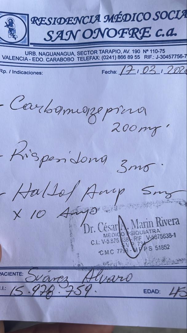 Intentamos ingresarlo en el hospital psiquiátrico público (Hospital Barbula - Carabobo), pero lamentablemente nos informaron que en este momento no podían admitirlo debido a la falta de insumos y de personal para atender nuevos casos.