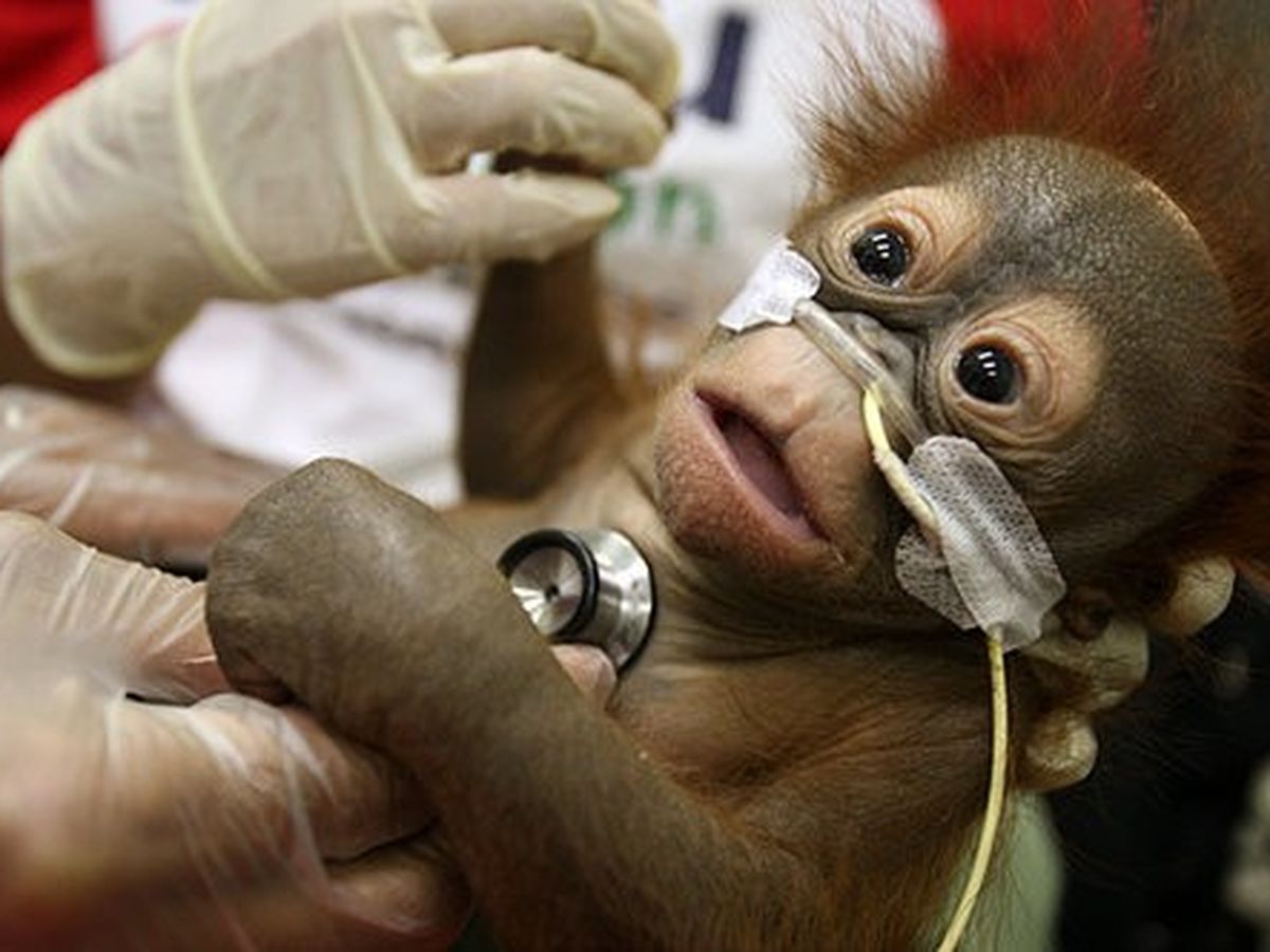 Baby orangutans are taken by poachers after they kill the mother. They are chained to trees and often beaten to death when owners get tired of them. They are left in cages to starve.