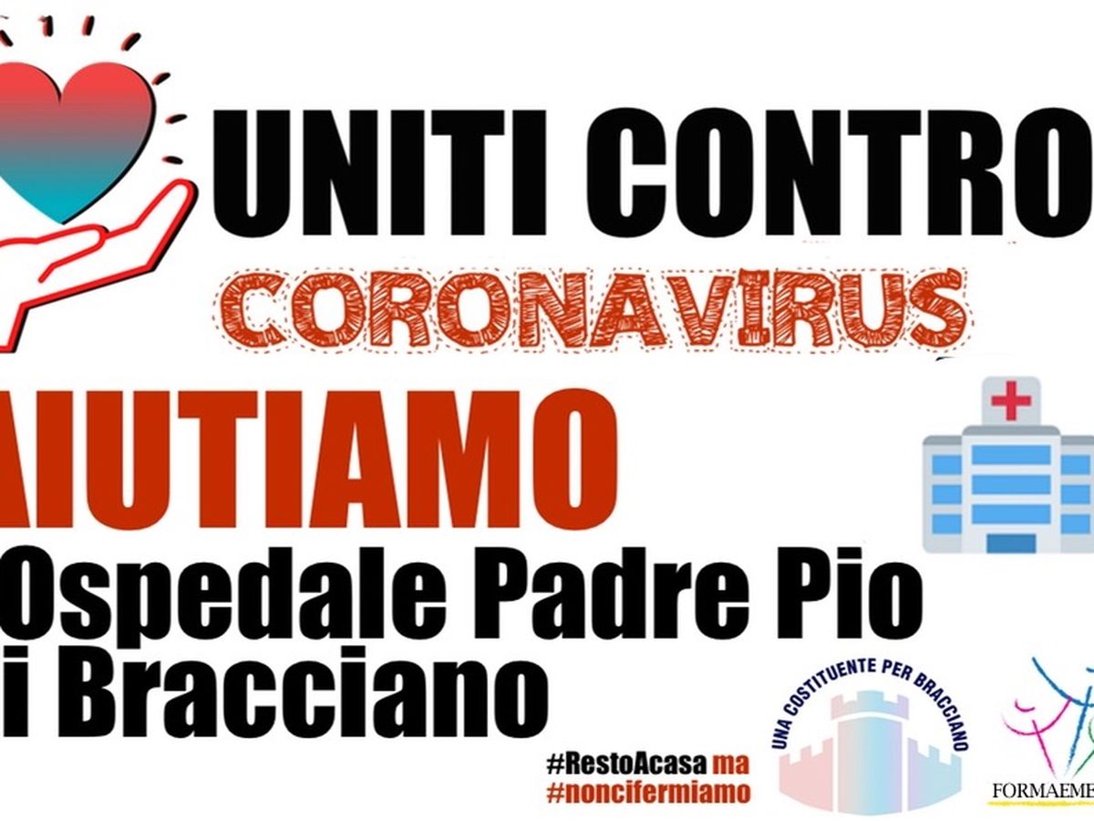 Un modo certo per aiutare, è aderire alla raccolta fondi, che abbiamo lanciato insieme all'Associazione Formae Mentis ONLUS di Bracciano, per poter sostenere la nostra struttura pubblica più prossima e importate per il territorio: l’Ospedale di Bracciano Padre Pio, che in questo modo supporteremo per l’acquisto di strumentazioni specifiche per contenere e combattere il Covid-19.