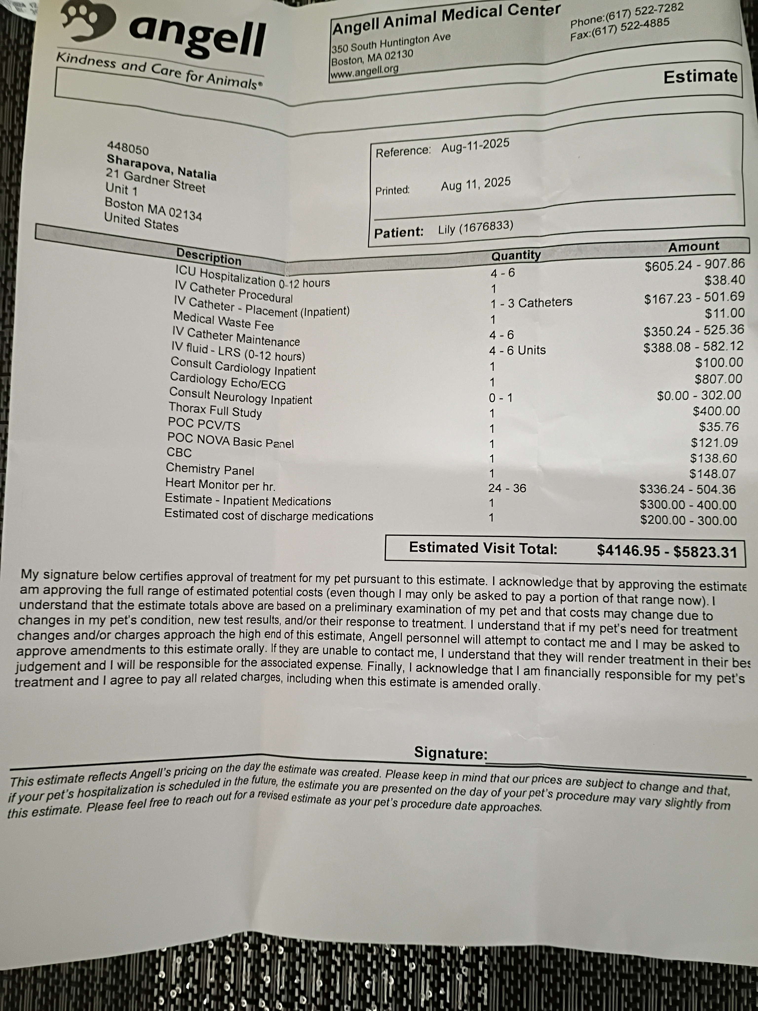 The ER doctor recommended admitting her right away for monitoring and specialized care, but the bill just for admission is nearly $6,000 — far beyond what we can afford.