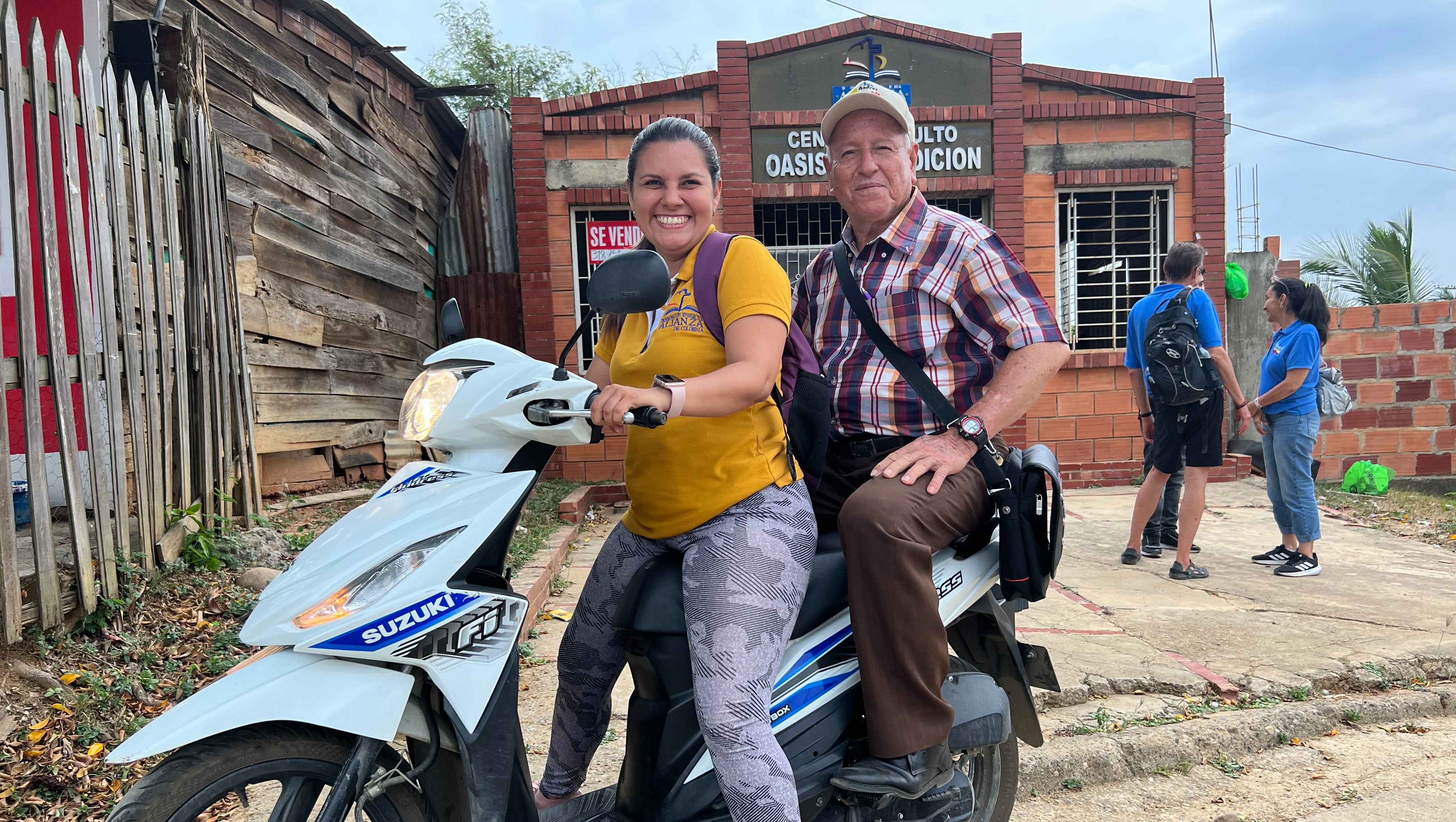 Pastor Perez visiting a neighboring church in barrio Camilo Daza