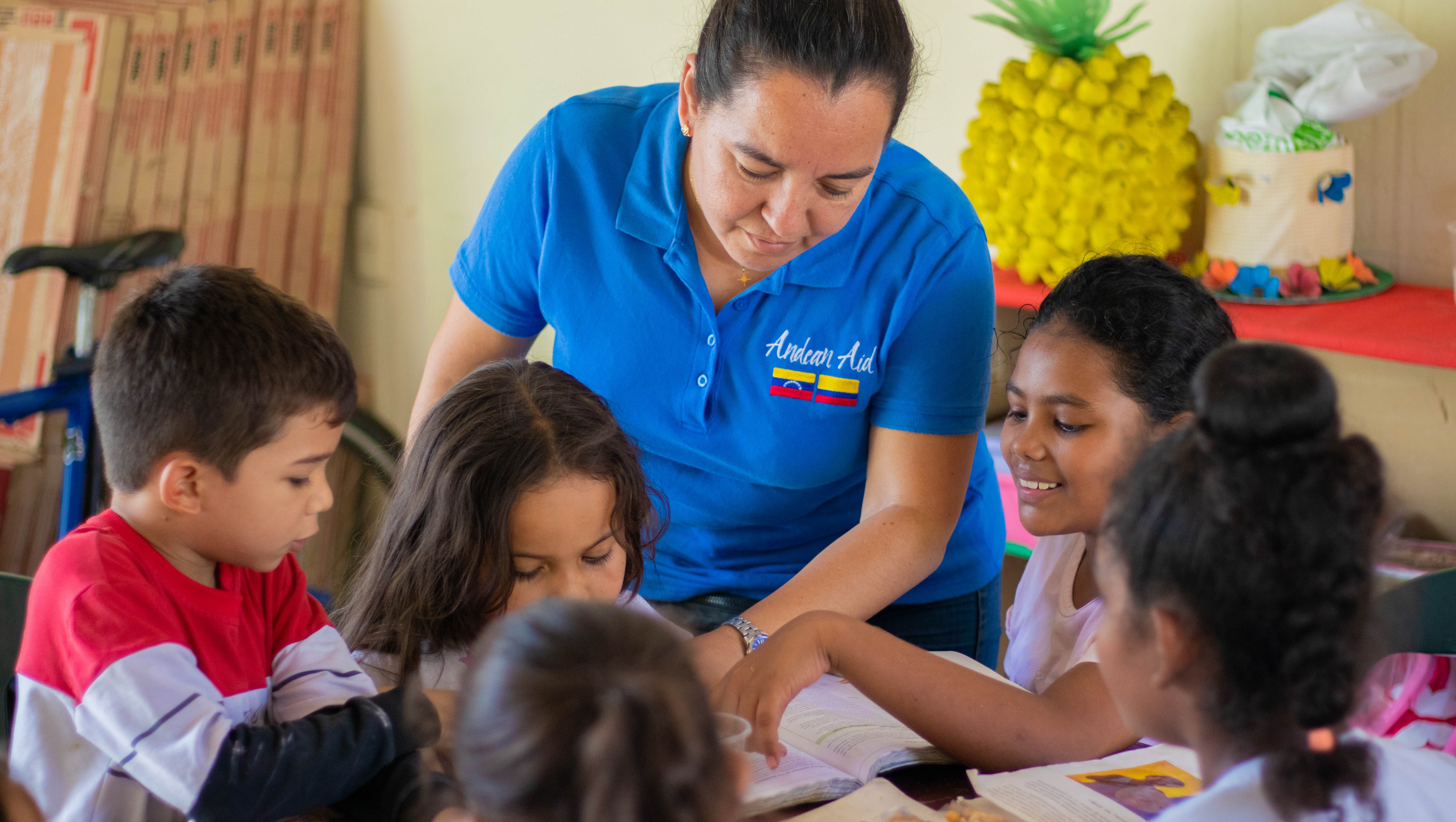 Jose's daughter Daira works with Andean Aid students on their schoolwork every day