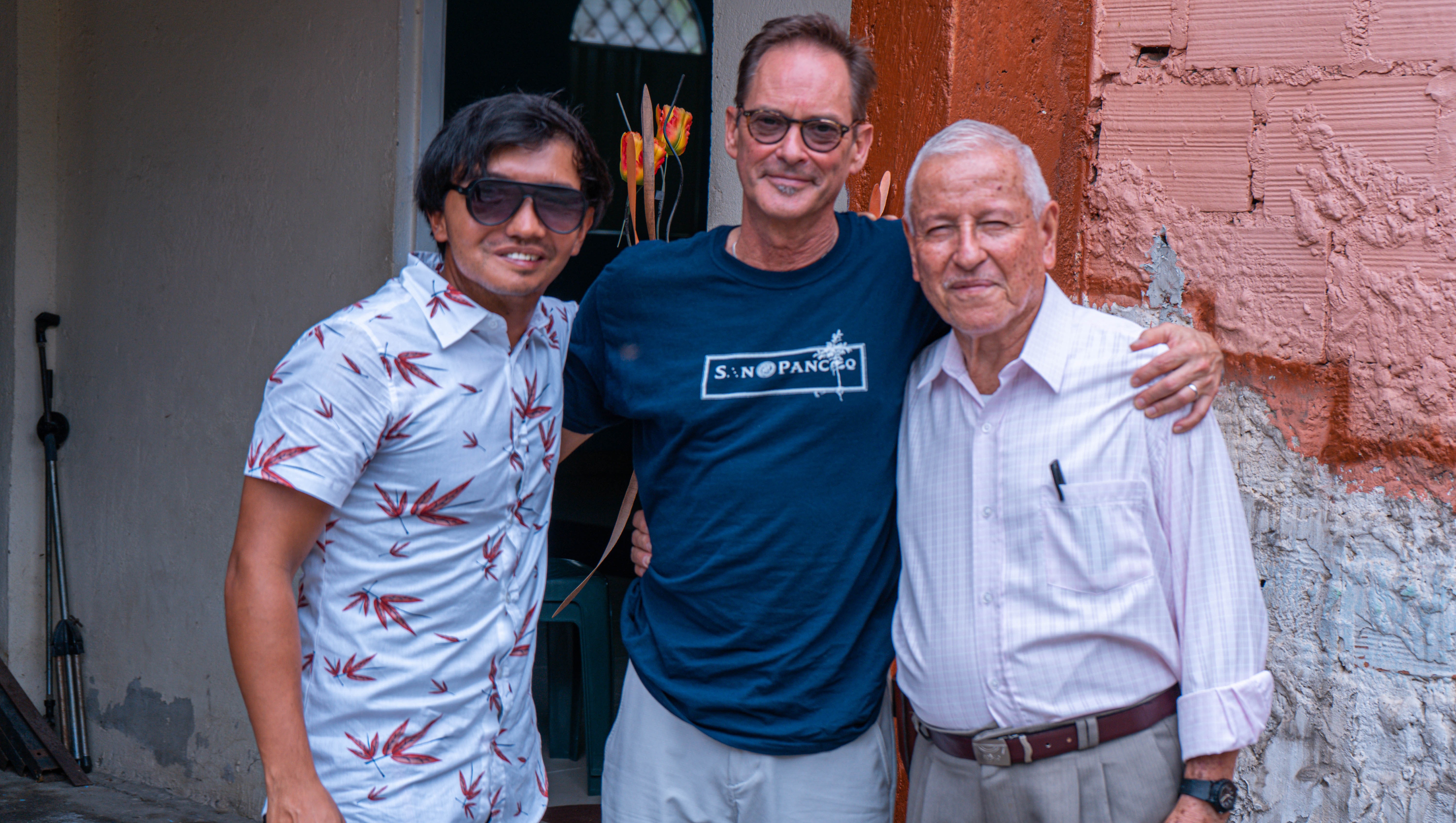 Pastor Brent Walker and former Andean Aid student Bladimir Gomez visit Pastor Perez at his church