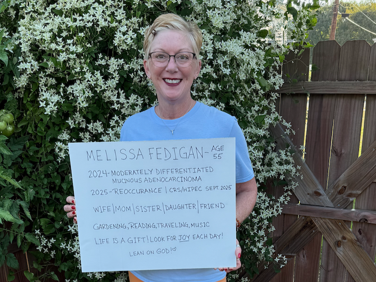 Melissa Fedigan — wife, mother, sister, daughter, aunt, Mimi, and dear friend — was diagnosed with appendiceal cancer in March 2024. She fought hard through most of that year, enduring chemotherapy, the “Mother of All Surgeries (MOAS),” which removed her appendix, along with several other organs, along with HIPEC on July 16, and additional chemo treatments after surgery. She rang the bell and was declared NED (No Evidence of Disease) on October 23.