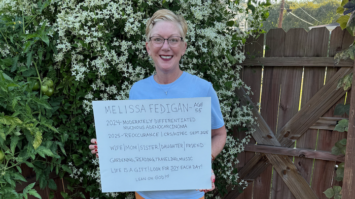 Unfortunately, routine tests in February 2025 revealed that the sneaky, sticky appendix cancer cells had returned. Melissa underwent more chemo treatments and was scheduled for another surgery with plans to remove her uterus, part of her bladder, more of her colon, and anything else deemed necessary—along with another round of HIPEC. However, when her surgeons went in on September 25, 2025, they discovered the cancer had spread throughout her abdominal cavity and was inoperable. They completed another colon resection and placed a colostomy bag before closing her back up.