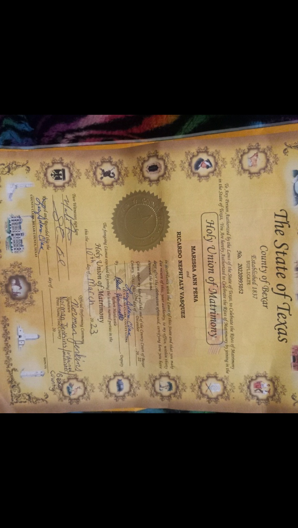 My wife n I have a very beautiful love story.. we met when we were 14 .. 15ish.. Right now we are 34..35.We were boyfriend girlfriend then but we had lost contact due to myself being shot. I was 15 yrs then n was more about streets friends gangs n all of that nature.I was hit 4 times and was in hospital for about 5 months,first 2 mths was in a coma.So due to all that she moved schools, I didn’t go back to school till next year of that incident ..I ended up turning 17 n going to state prison here in tx for a Burglary . I eventually was free n reconnected with Marissa when we was 23 on Fb.We was both happy to reconnect with each other but she was more for the simple fact that she thought I had passed away then at 15 yrs old.!OMG Right?? She had 3 babies at that time n I had 1! We were together but not living together but very much in love trying to get ourselves together to be together as a family.. my selfish old ways took me away again n this time for 6 yrs. In 2021 I was released n reconnected back with her. Through out those 6 yrs it was rough for me in there as well it was for her out here.. so maybe 2times a year I would call her or I would hear from her barely a quick minute or so . We were both struggling with addiction upon my release in 2021.. We got married 10th of March 2023 by this Pastor whom we got blessed to meet working with one of my wife’s cousins at that time doing Demolition.