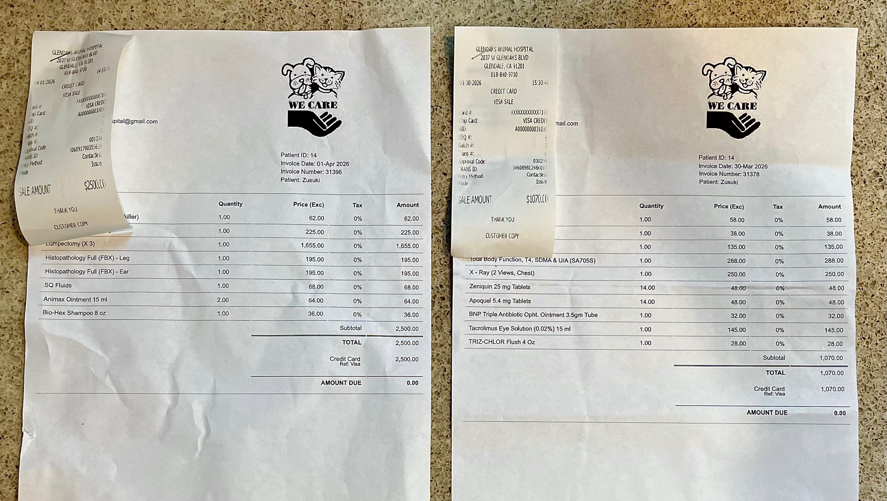 (UPDATES: [03/30/26]: ZUKi - She was seen today by her vet, did some X-ray(2views), gen. Exam, blood works/panel(T BF;T4;SDMA & U/A, Triz-Chlor Flush, Tacrol Eye proc, ATB/Cytopoint shots, biopsy (skin spec.) pre surgery, and take home meds. Her surgery is scheduled in two days(Wed.) for the removal of skin tumors on her L foot, R cheek and L ear (under gen. anesthesia).