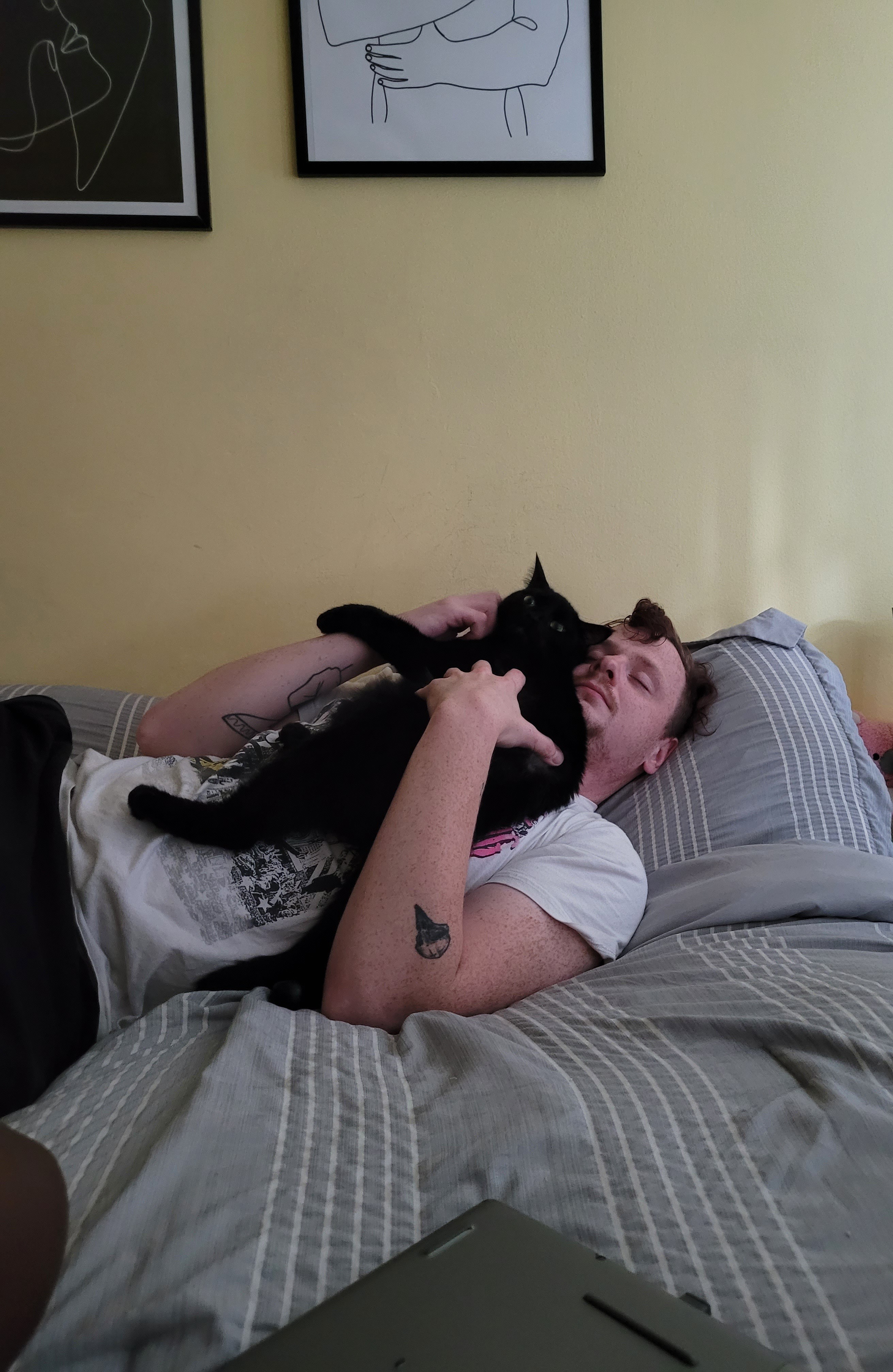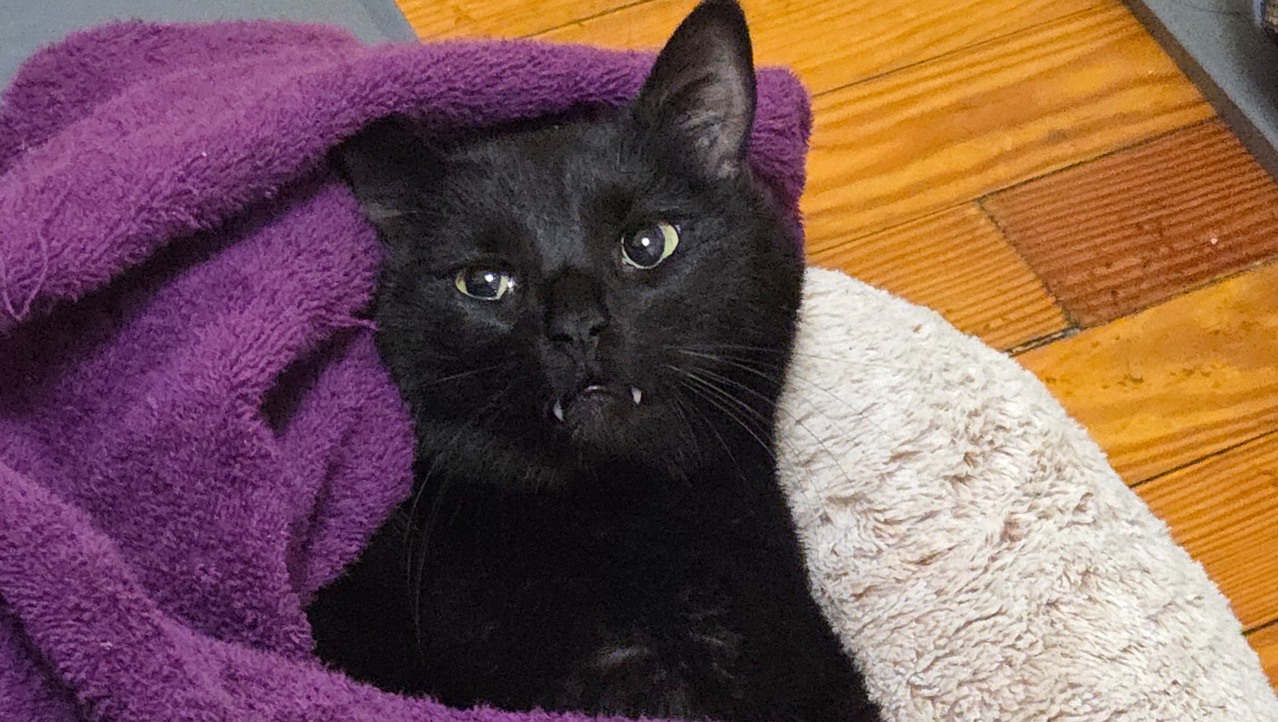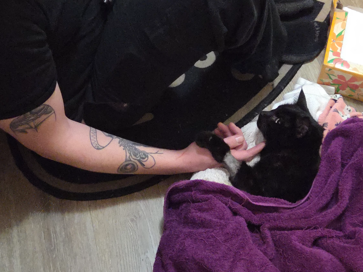 We spent our Valentine’s weekend in the 24‑hour ER crying and sitting with Stevie as he received care. The doctor explained that if we could stabilize Stevie past that critical stage, he would need to be on medication for the rest of his life to keep the fluids from rebuilding. She also said that a typical case of saddle thrombus usually affects both of a cat’s hind legs and thus their immediate quality of life. Stevie getting it in his right front leg was different, and that with attentive nursing and medication, he could have a decent quality of life or possibly regain mobility.