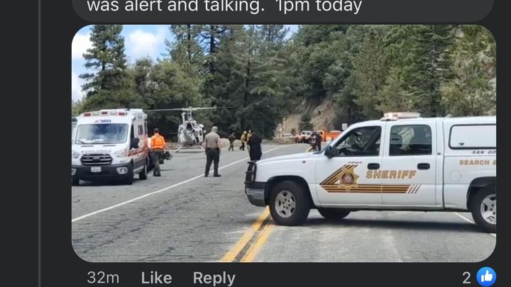A flash flood occurred off of Hwy 38 in the San Bernardino Ca mountains. Her home and everything in it was completely destroyed by trees, debris, mud and rocks. She survived miraculously with only a sprained ankle and a lot of scratches and bruising. Certainly lucky to be alive.