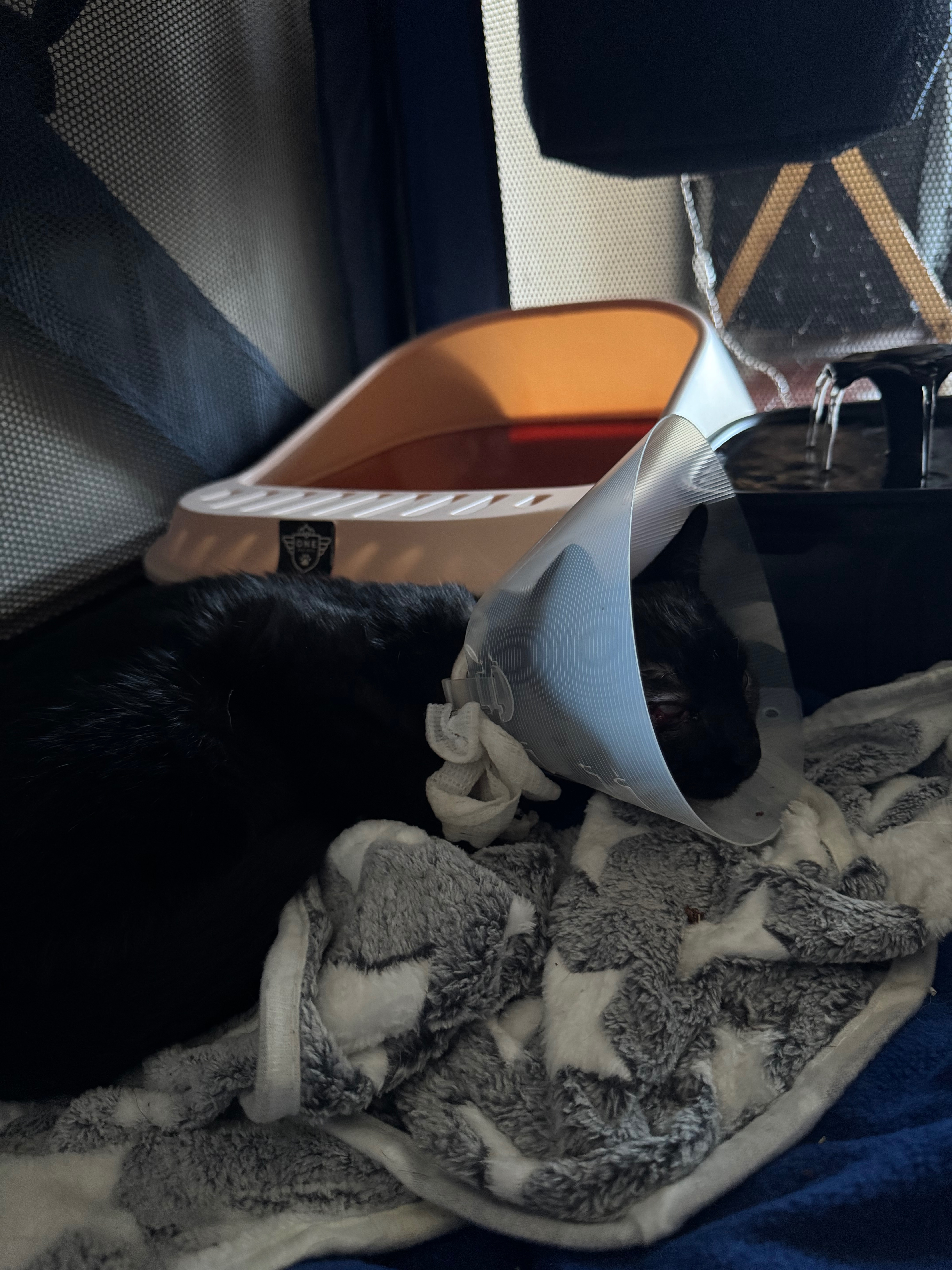 Our 3 1/2 month old black kitten rescue was suddenly attacked and deeply injured, resulting in his right eye being completely unsalvageable. It was detached from the eye socket causing immense damage and massive blood loss. We are very traumatized and seeking for help to be able to get him the care he needs. The vet bills are extremely high due to the injuries and we are currently unable to get him the surgery he needs. Spooky is an incredibly sweet and loving cat, and he deserves all the help he can get! Any help is greatly appreciated so we can ensure a recovery for him.