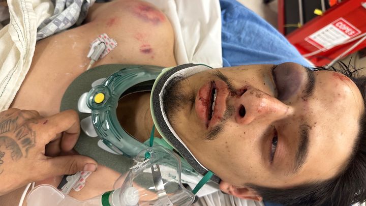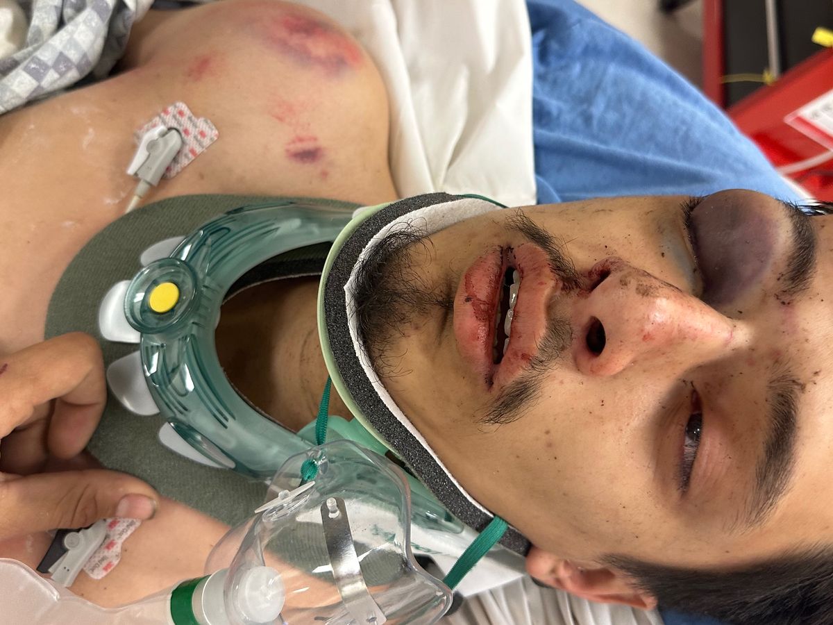 Los doctores nos informaron que mi hijo tiene su cráneo quebrado, algunos huesos rotos del cuello, junto con la clavícula derecha quebrado, costillas quebradas, cavidad del ojo derecho quebrado, la vértebra #6 quebrada, la canilla derecha quebrada y moretones y lecciones menores por todo su cuerpo.