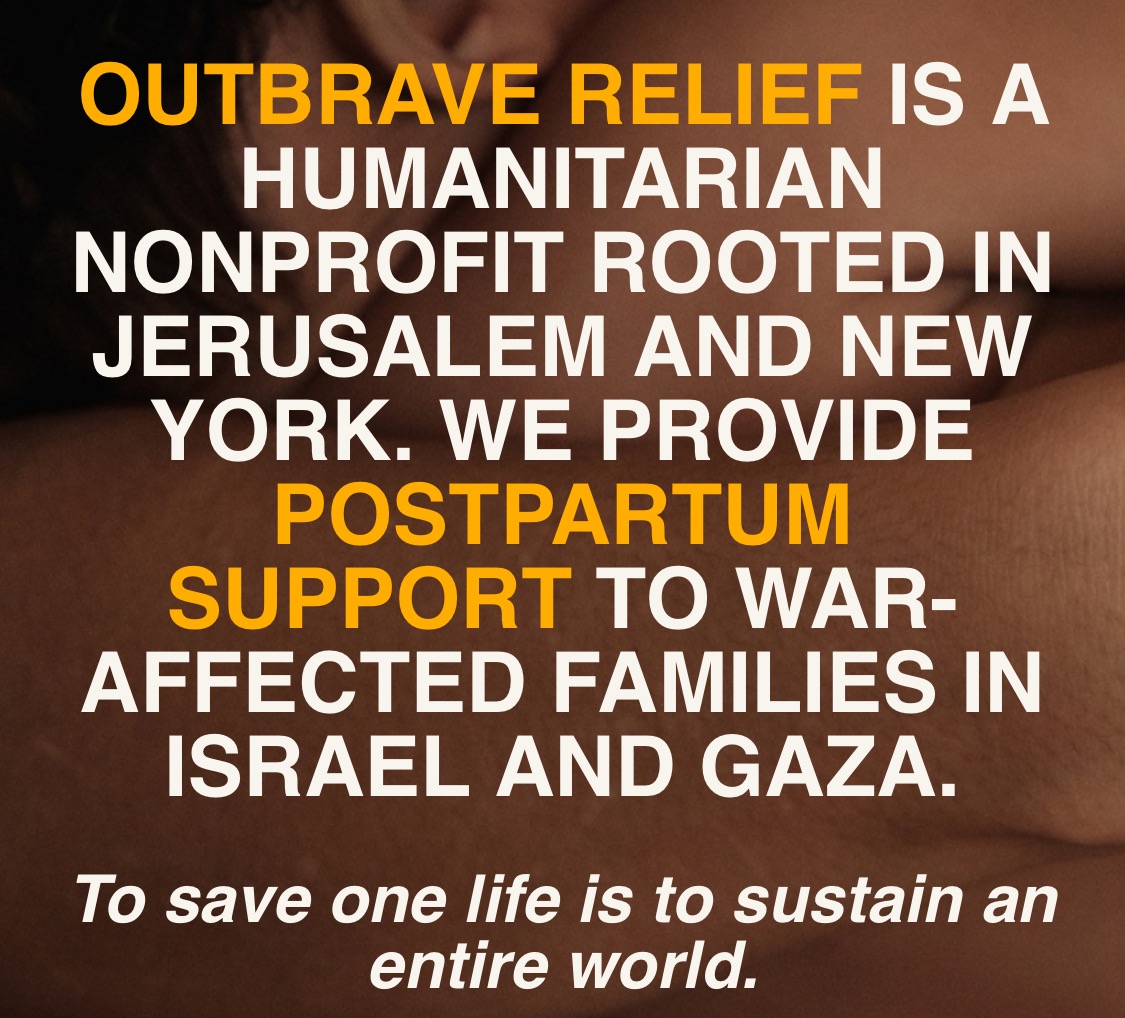 I am asking for donations to Outbrave, a nonprofit based in Jerusalem and New York that provides strategic and material support for maternal and neonatal care in Israel and in Gaza.
