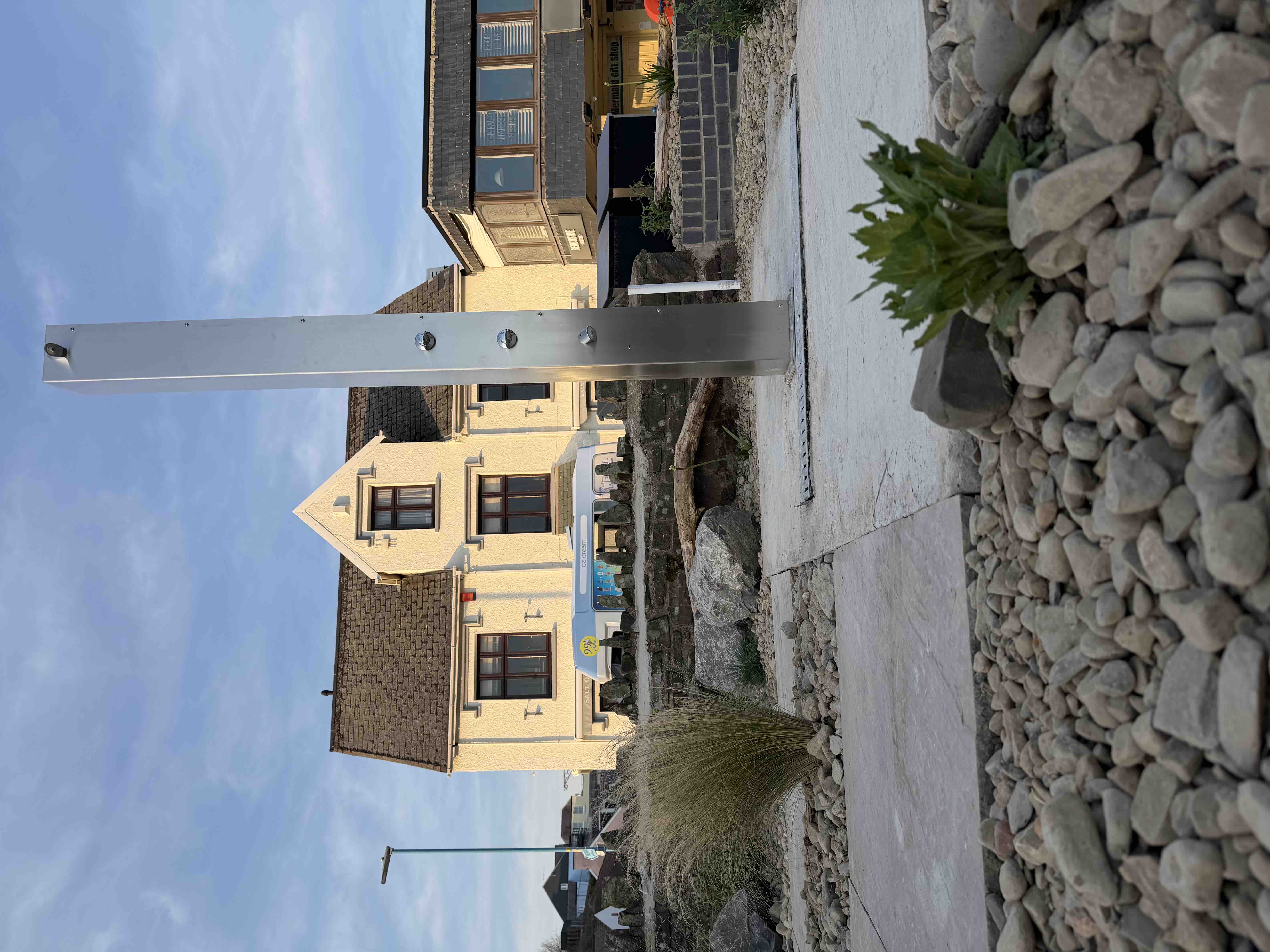 Outdoor, cold fresh water shower on Saundersfoot Harbour