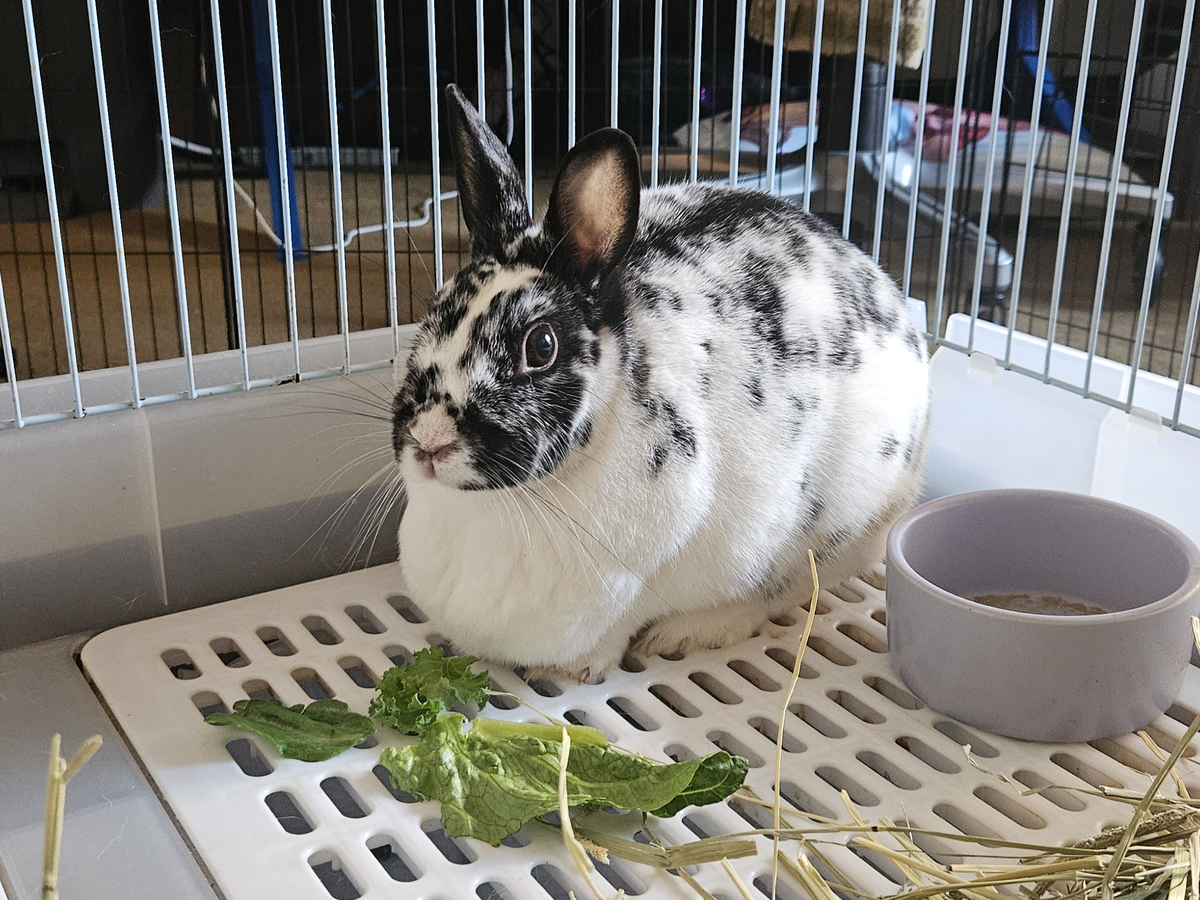 3-year-old rescue bunny in need of medical assistance. She is unhealthily overweight due to the prior owners feeding her pellets her whole life.