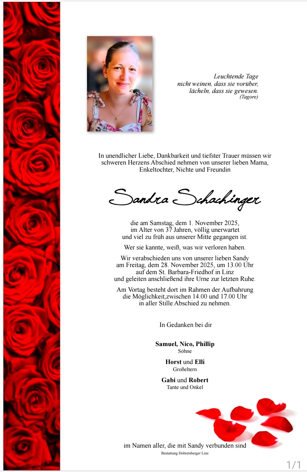 am 01.11.2025 verstarb plötzlich eine langjähre Freundlin. Sie hinterlässt 3 Kinder, die nun Halbwaisen sind.