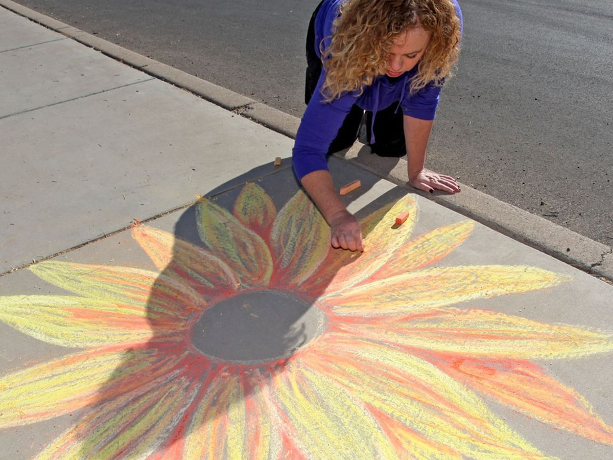 You know her work from the Little Free Library by the dog park, where a wise owl encourages readers, and may have seen her chalk art florals bursting from the sidewalk in the thick of the pandemic, or in several pieces that she donated for our online art auction in 2020 to finish our perimeter sign drive.
