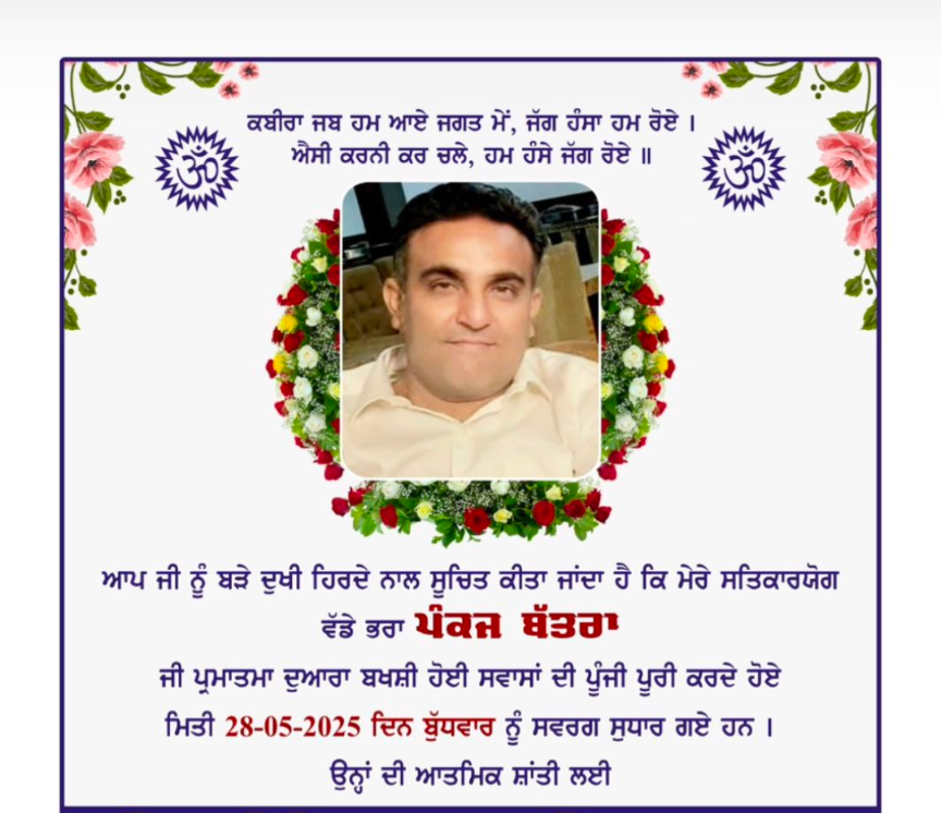 Hi Everyone from Banga. Please contribute as much as you can in the memory of our Brother Pankaj. Thanks