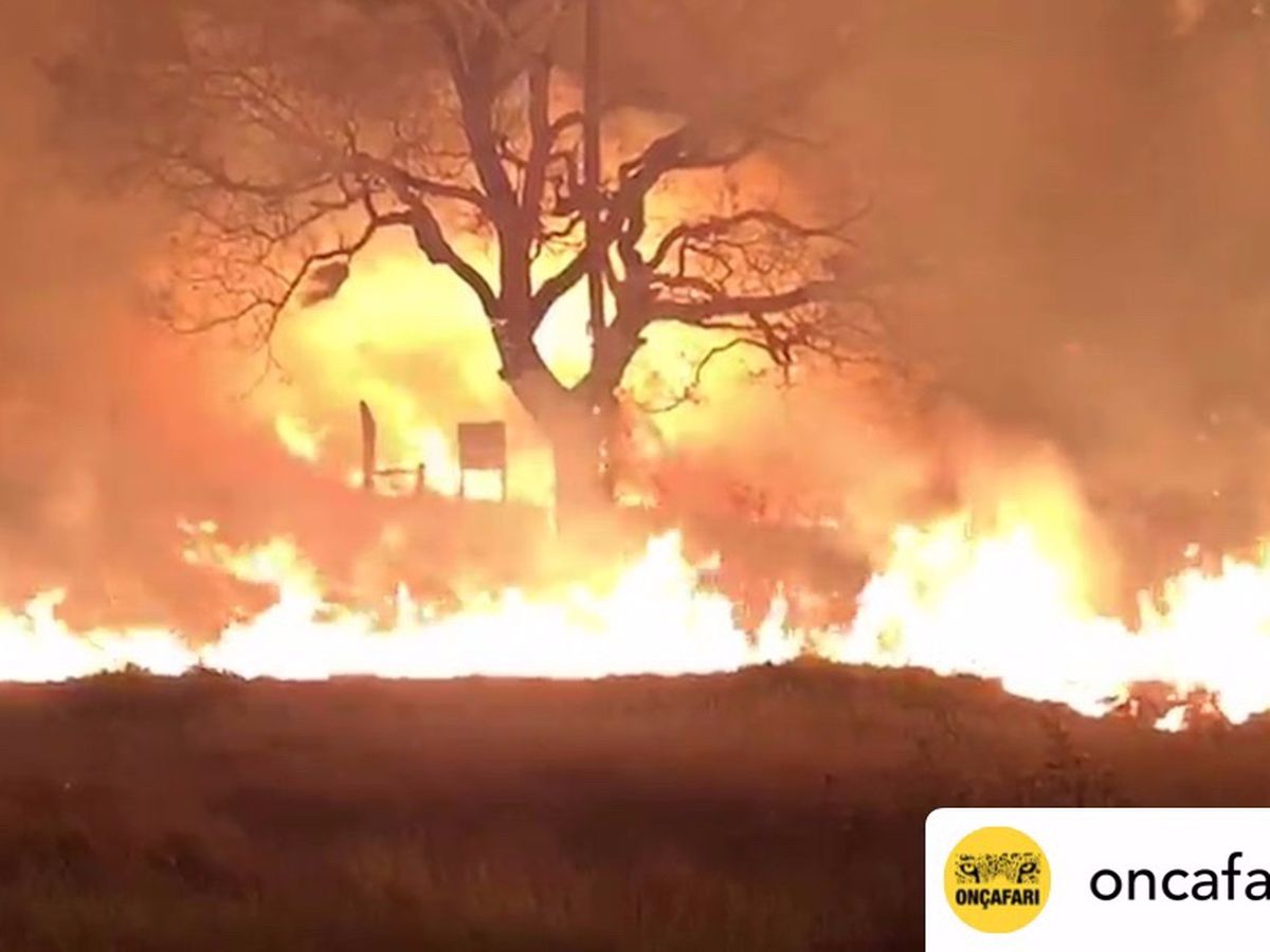 Our Jaguar Rewilding enclosures have been burned. Thanks to a herculean effort from our team we managed to remove Jatobazinho, a male Jaguar that was inside the enclosure going through the rewinding process, and airlift him to a safe location minutes before the fire hit.