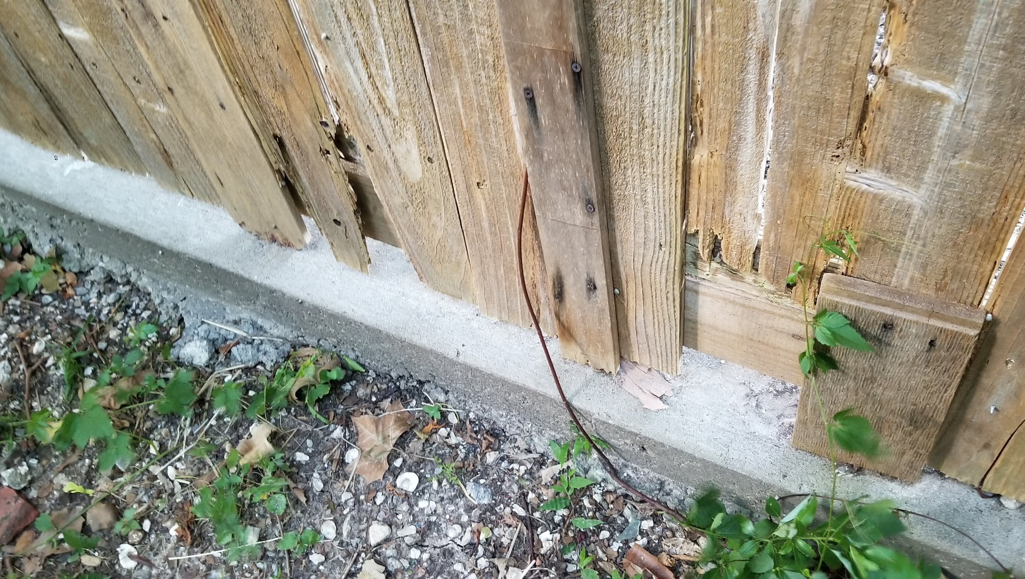 Unfortunately, the wooden fence adjacent to the neighboring cemetery is in need of significant repair. Many of the fence pickets have decayed and need to be replaced. This fence keeps our dogs from getting into the wilderness behind the fence, so it's quite important that it be intact.