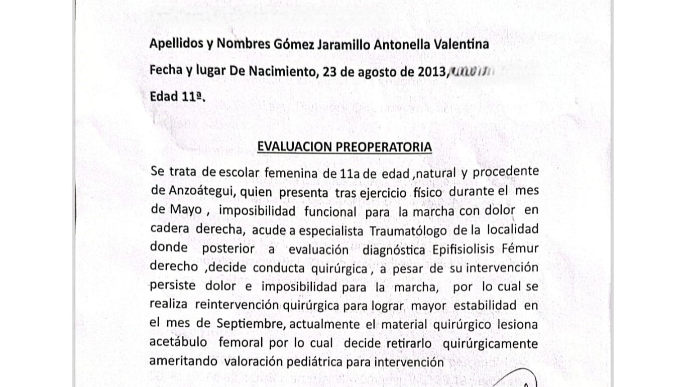Todo comenzó en mayo de este año, cuando Antonella empezó a quejarse de un dolor intenso en su cadera derecha... No podíamos imaginar lo que estaba por venir. Después de varias visitas médicas y estudios, los doctores nos dieron un diagnóstico que cambió nuestras vidas: un deslizamiento epifisario de la cabeza femoral derecha. Este problema en la cadera limitaba su movilidad y causaba un dolor constante que no la dejaba disfrutar de las cosas simples que a ella tanto le gustan, como jugar, asistir a sus clases o su gran pasión por bailar.