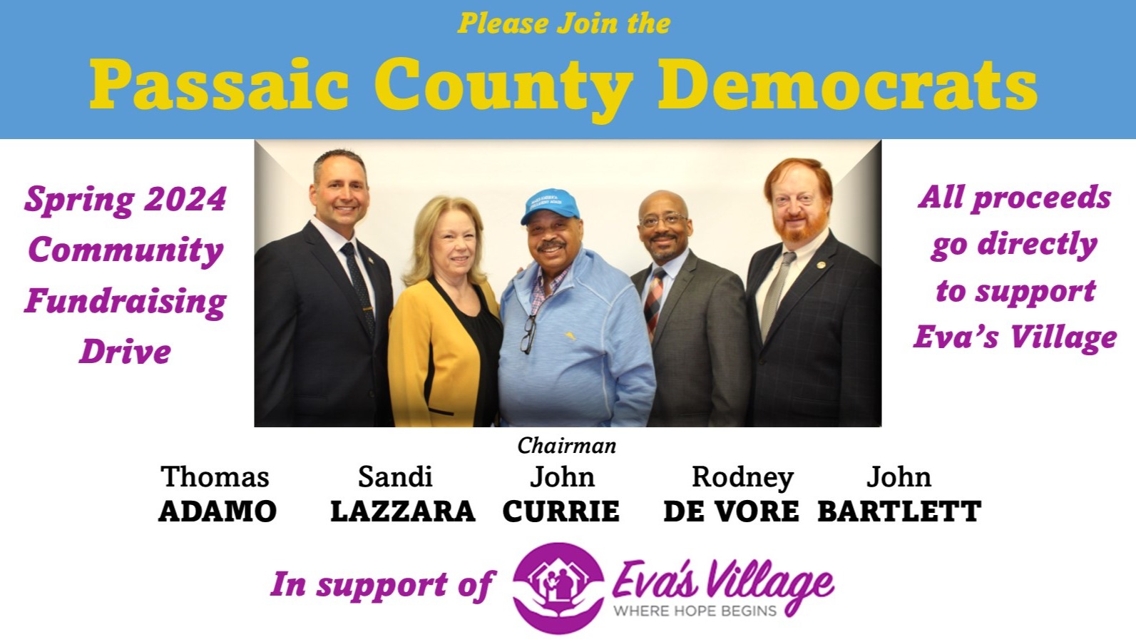 Passaic County residents are fortunate to have a number of amazing organizations that work with our government to support individuals and families through times of trouble. Sometimes we all need someone to lean on, and today we are asking for you to join us in supporting one of those partners - Eva's Village.