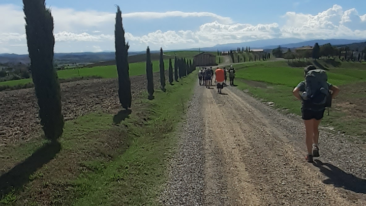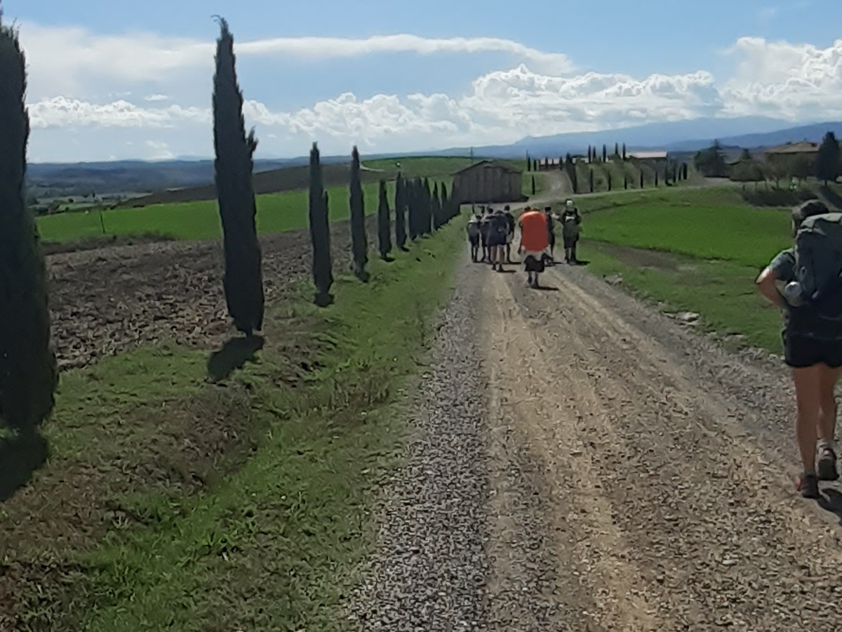 tra i 12 e i 16, si mette in cammino lungo la Via Francigena. A piedi, zaino in spalla, sotto il sole,