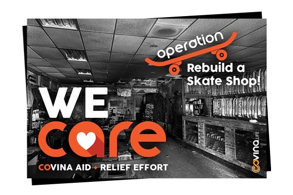 Although insurance will help with some of the cost, we want to make sure the Pawnshop Skate Co. team gets enough assistance to replace lost merchandise and equipment, and to rebuild their home base so they can continue to keep Covina and our awesome community, well, awesome!
