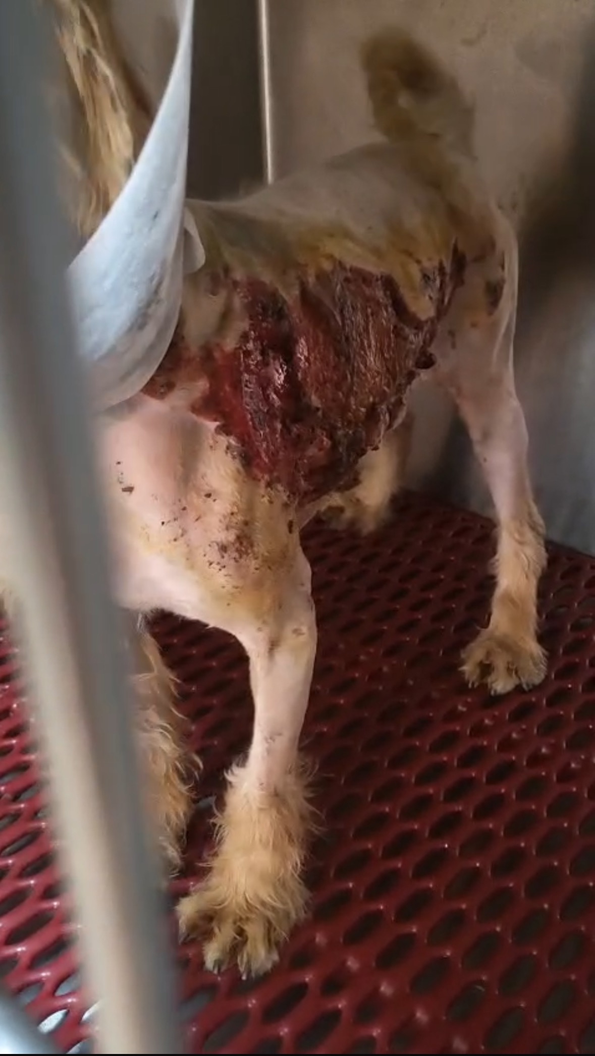 One of them is this beautiful soul (pictured below), whose own skin is in horrendous condition after developing this bacterial skin condition and bottom line is we don’t have the funds to give him the care he needs and so desperately deserves