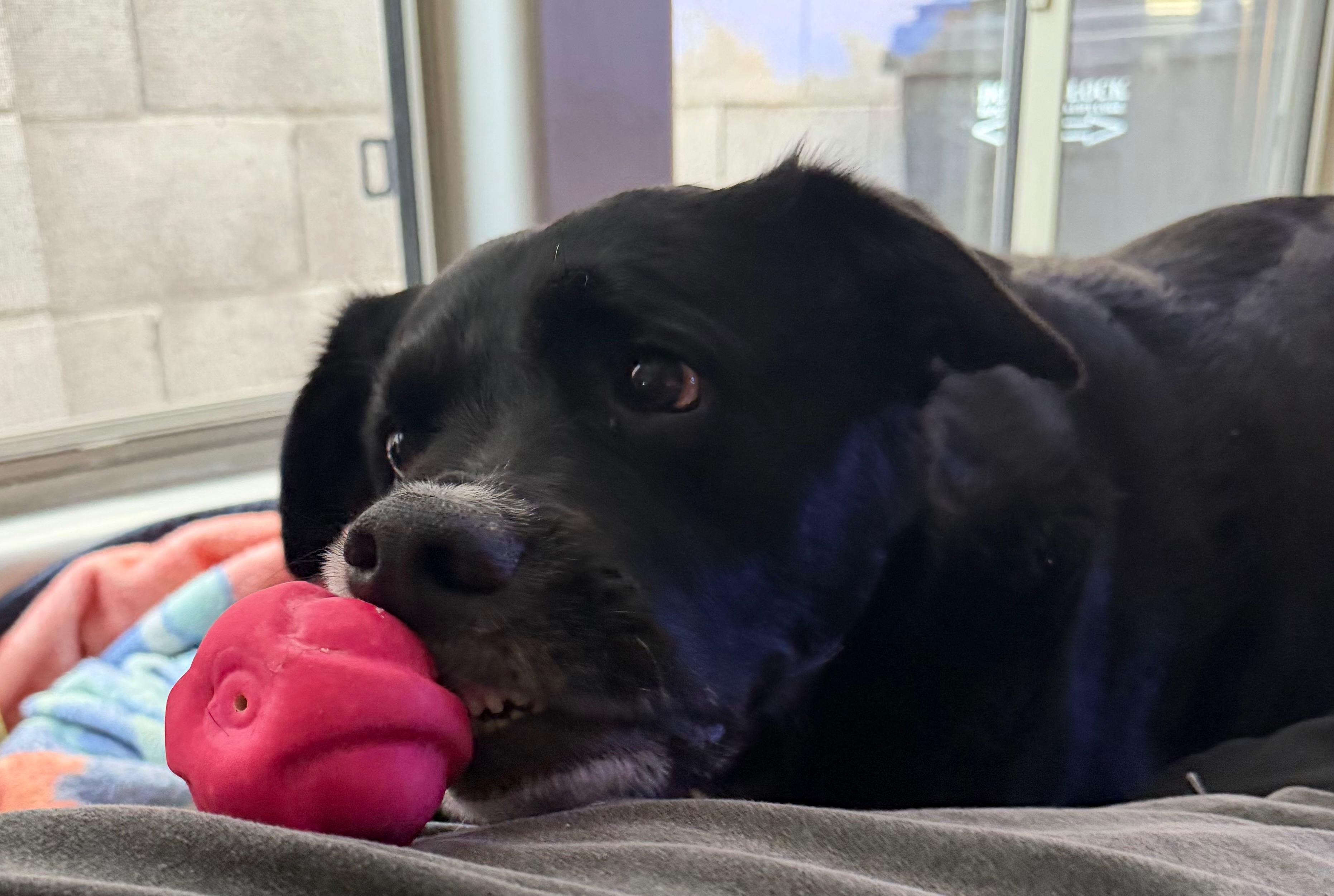 Astro has recently been diagnosed with hip dysplasia and a torn CCL, which has made even simple movements painful. While he’s currently on pain management, surgery is the only way to truly help him live a comfortable, active life again.