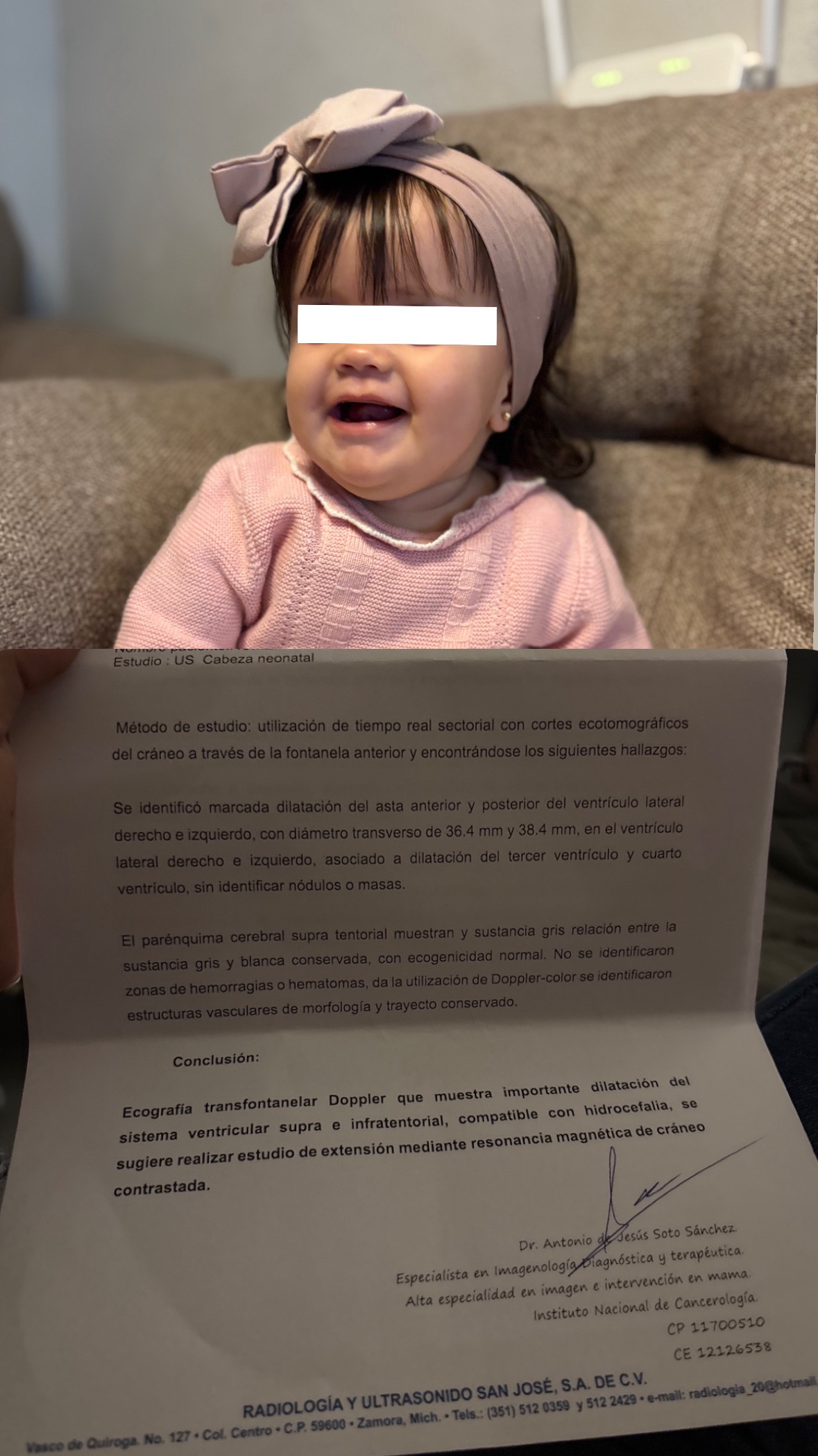 Para lo cual se requiere de manera urgente una cirugía para la colocación de una válvula en su cabecita, derivado de un diagnóstico por Hidrocefalia.