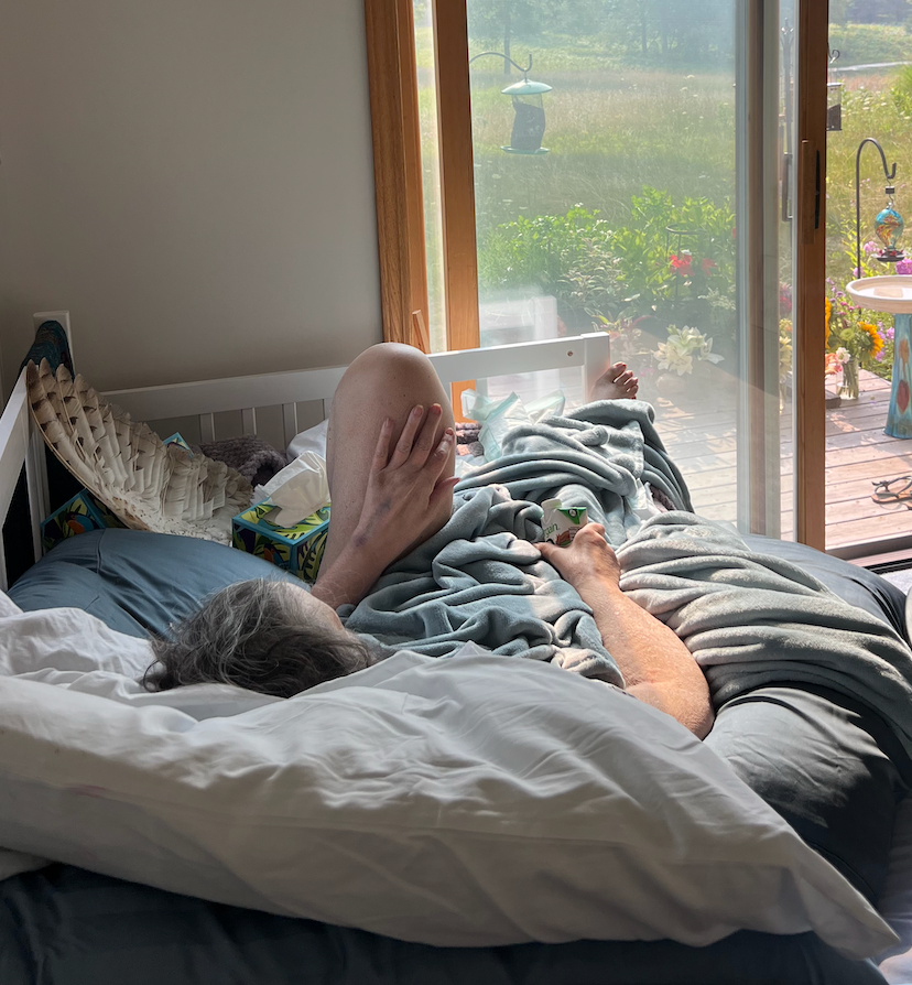 Tina is declining gently and peacefully. Anyone who has truly known her knows this is a reflection of her essence, a soul as gentle & peaceful as they come. Tina is surrounded by her son Mike, Cierra, and their partners. Since the transfer from the hospital to her son’s home, she’s spent her days gazing out the door wall to hummingbirds at the feeders, a beautiful array of wildflowers and wide open field that overlooks a pond filled with geese. She’s enjoyed visits from her 3 sisters and cousin who have traveled from all over the country to say fare well.