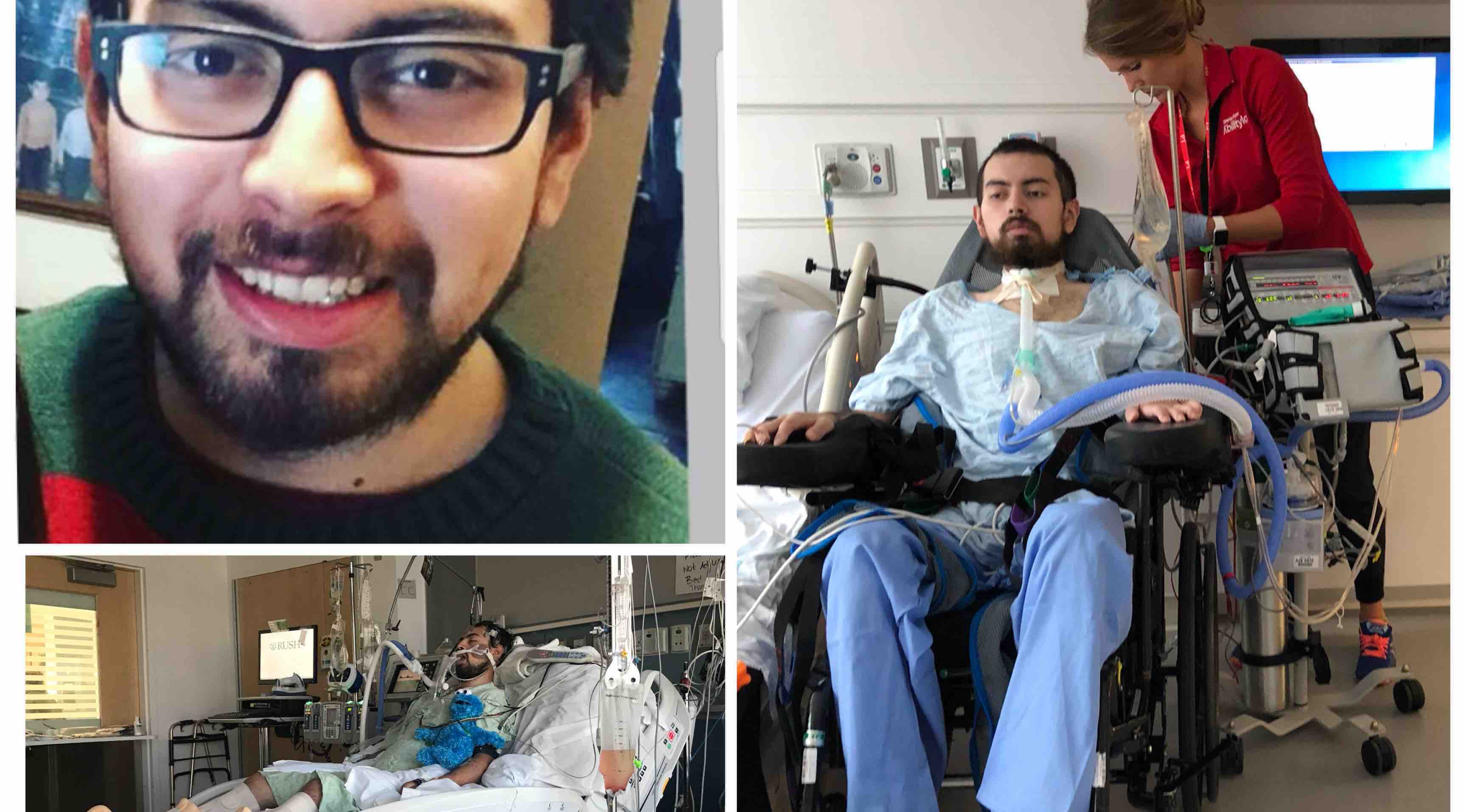 Hello everyone, thank you for taking time and reading his long story and struggle. After reading this we ask if you can help him, we appreciate anything you can donate. If you can’t help we understand, all we ask is to please say a prayer for Nico and to please forward it to others that can send pennies or a prayer on his behalf. This is about Nicolas Carrasco Villalobos Mendez. His friends and family, better know him as Nico. He is like any other kid his age, even though he is 25 and technically a man he is a big kid at heart. Thru a close family friend he found a job as an apprentice, as a union iron worker local 63. He is the oldest and has 3 little sisters and 1 little brother. They love to torment him but like a big kid Nico loves to pick on them as well. As the holidays arrived we spent them with family. On Christmas Eve we were at his grandpas house and as the picture shown above he looked perfectly fine. Christmas arrived and like every Christmas morning he woke up to open gifts with his brother and sisters that Santa had dropped off. After the gifts he felt sick. So we told him to rest and maybe he was getting the flu. He slept all day and he did not really leave the bed until the 26th. He quickly started to lose strength and could barely stand. He was rushed to a local hospital. While he was there In the emergency room they did a CT scan and a spinal tap, finding out he had 7 abscesses in his brain and meningitis. He was quickly transported to Rush hospital in Chicago. Within a couple of hours he was becoming disoriented and loosing speech. They were quickly working on him knowing that every second counted. When we received the results it was a devastating blow to our hearts. The doctors told us when they were attempting to stabilize him when he arrived, he had a stroke on his spine that paralyzed his entire body. They also told us that we would probably have to say our goodbyes because he will not make it passed January 2nd. The meningitis and the abscesses were consuming his brain to the point they drilled a hole into his skull to feed antibiotics directly to his brain instead of thru an IV. Nico finally regained consciousness and was unable to breath on his own or talk. Every minute that passed we prayed that his condition will improve and get stabled to the point we don’t lose him. Our prayers were answered. They were able to save our Nico. He was still not out of the woods just yet, but at least he was alive to fight for another day. This is where his journey begins to recovery. He was sent to RML in Hinsdale, his first long term rehab center. Here they were working on his lung rehabilitation while he was on antibiotics for the bacteria in his brain and the abscesses. So now his doctors main focus was to get him to talk or to wean him off the respirator. After a month they gave us the news that he will probably live like this for the rest of his life. While he was at the rehab center Nico was starting to lose all hope & we are trying to keep Nico’s spirit up. Every time they give us good news somehow a day later they give us bad news. Every time he gets sick he loses more and more weight. He started at 155lbs and at this point he weighed 119lbs. We keep telling him to stay positive and he will get better, it will just take time. I know his path and journey almost seems repetitive but this is the long struggle he has been going thru since December. Their goal was to get him into Shirley Ryan formally known as RIC. Here he would be able to have aggressive therapy perhaps move one day. We waited for the responses of the insurance company. They denied him and refused to cover his treatment. We were heartbroken. The doctors from the facility were eager to work with Nico. After reading his file and his horrible journey both doctors from RML and Shirley Ryan knew Nico had a great chance at recovering at the rehab center. So the 4 doctors from both facilities had a conference call with the insurance company on Nico’s behalf to convince them that he was a good candidate of recovery.They knew with the proper therapy he will be able to move again in time. The next day he was approved by the insurance company. They said they never had 4 doctors talk on a patients behalf before. He has been at Shirley Ryan for 2 weeks now. He is exhausted after all the intense therapy they have him doing. But he is happy and alive. The only thing with this rehab center is that it’s a short stay. He will be trying to improve everyday that he is there, until he is released. Great news is that he will finally be coming home to his family. This is why we need your help. He will need equipment to help move him around from the bed to the shower. Special seat to hold him up in the shower. Everything now has to be modified for someone who is paralyzed. A lift to get him from the bed into a wheel chair. To his respirator with backup batteries. A special wheelchair that he will need to help him get around. A ramp at every entrance. This was a long struggle for Nicolas and the family but we are so happy that he can finally come home. Since being at Shirley Ryan he finally moved his arm and waved goodbye to us for the first time since December. He told us goodbye when we left the hospital room the other day and we are just blessed we didn’t have to say goodbye to him.