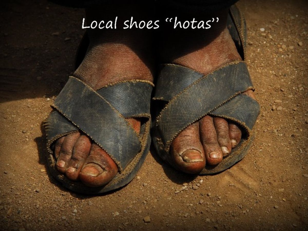 The villages of Chacabamba and Quisicancha, Peru are at 14,000' elevation and most of the people wear sandals year round - even during their cold winter months.